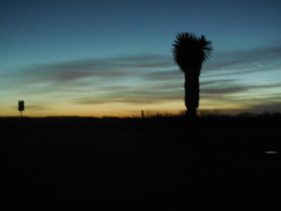 Ah, a deputy sheriff just walked over from his patrol car, says he saw our lights. He agreed with us that this town has some problems. He recommended shooting any troublesome dogs! About the scuzzy area, he said it was killed by I-10. Most significantly, we asked about the best route for us to El Paso. He said stay away from the towns south of I-10. They have lost control of these to the cartels, he said. Further, the head of Sina Loa was just captured, and they expect all hell to break loose in the resultant shakeup. North of I-10, they feel their patrols are dense enough. I-10 itself, though, he said is the main conduit for drugs. Once across the border, they will mainly be shipped East.