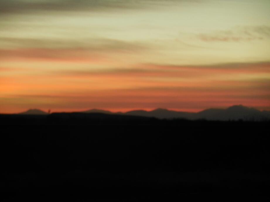 There is one last climb on the route (prior to California) and it is up to Sierra Blanca. However, the wind which had started as a cross wind moved around to give us a hand, and we cruised to the top quite quickly and easily. All around stood distant purple mountains. The operative word is distant, the best place for mountains, in our opinion.