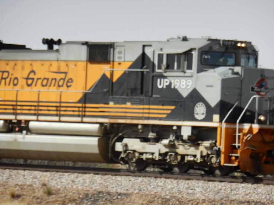 We stuck to the right side of our wide shoulder, which was good because various wide loads encroached on the space, though no vehicles actually crossed the rumble strip. To our right were the train tracks, and two or three trains passed us. We at first thought that here the engineers would not blow the whistle for us, because of the highway, but no, they waved and whistled!