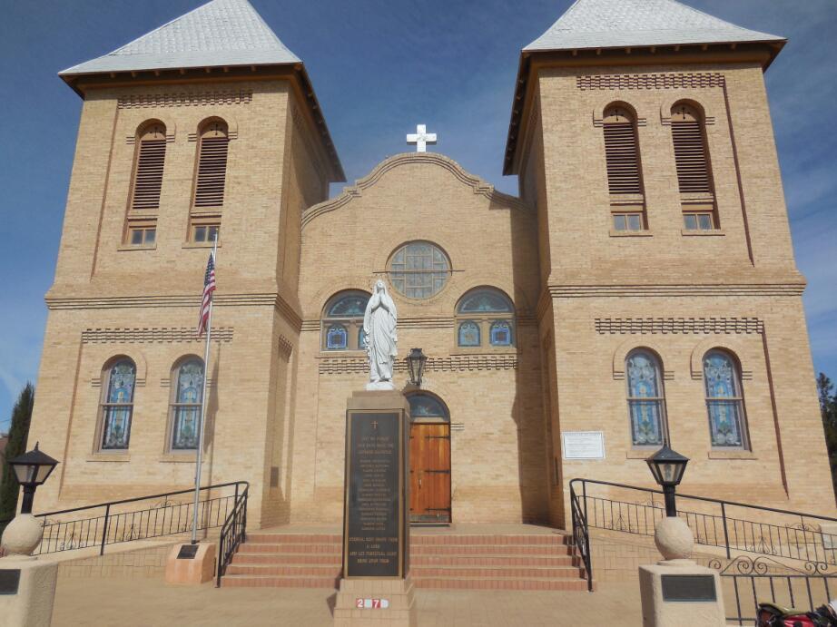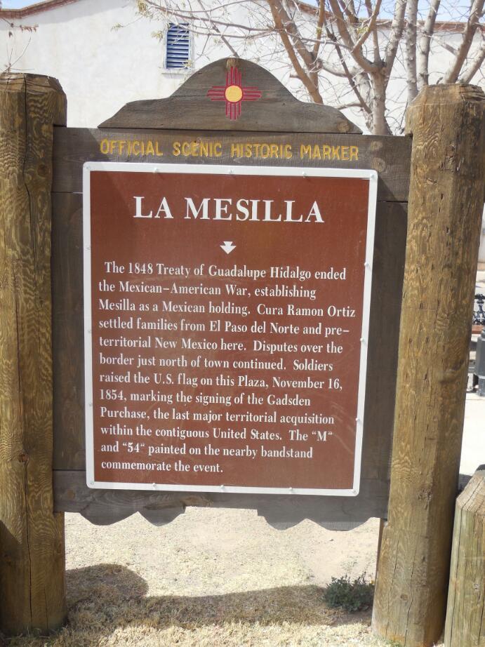 Mesilla is a small town of one story adobe buildings. It is clean and peaceful and centred around a plaza of the type we liked so much in Europe. That is, a church at one end and shops around a square, with places to sit within.The church is the Basilica of San Albino. It has the distinction of having originally been established in Mexico, but it is now located in the United States as a result of a transfer of territory in the Gadsden Purchase. The first church on the site was built in 1852; the current structure was built in 1906, and is one of the oldest churches in the region. Opposite the church, around the square are a series of buildings also made from fired brick and built in the late 1800's.