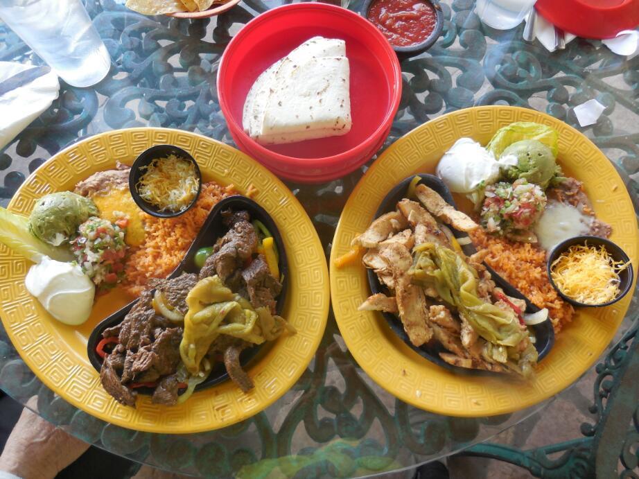 The fajitas plates we got had huge portions, with so much onion, pepper, refried beans, sour cream, lettuce, guacamole, etc. For people who have not seen vegetables in a while, this was mind boggling. The $13.95 price of each plate was not totally cheap, but oh so worth it!