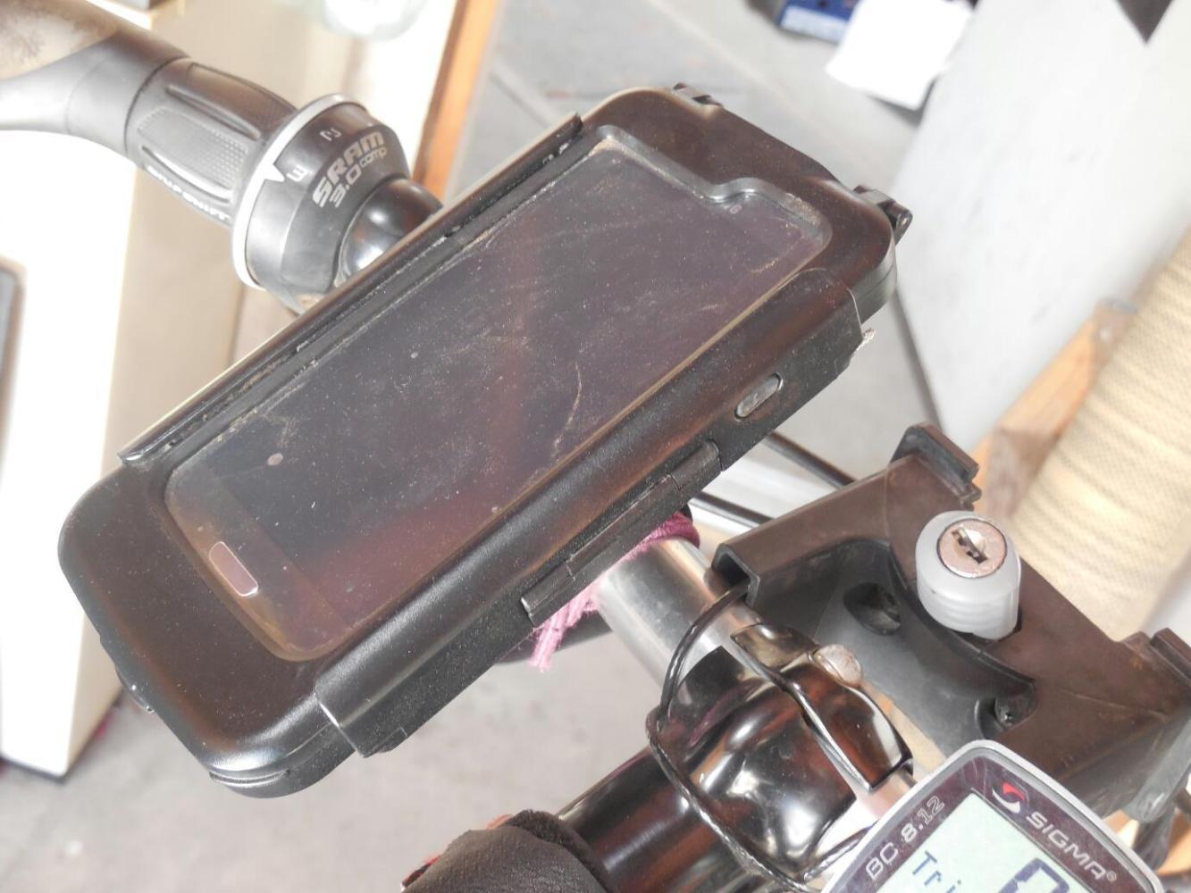This is where the handlebar mounted, waterproof, smartphone case comes in. There are lots on the market, with each of course designed to fit a specific phone. We only have experience with the one we found for our Samsung Galaxy S3. To the extent that our finding also applies to other makes and models - it did turn out to be totally waterproof, the touch screen part did not noticeably hinder the ability to use the phone, and the clear screen also did not noticeably yellow or become opaque in three months of use.
