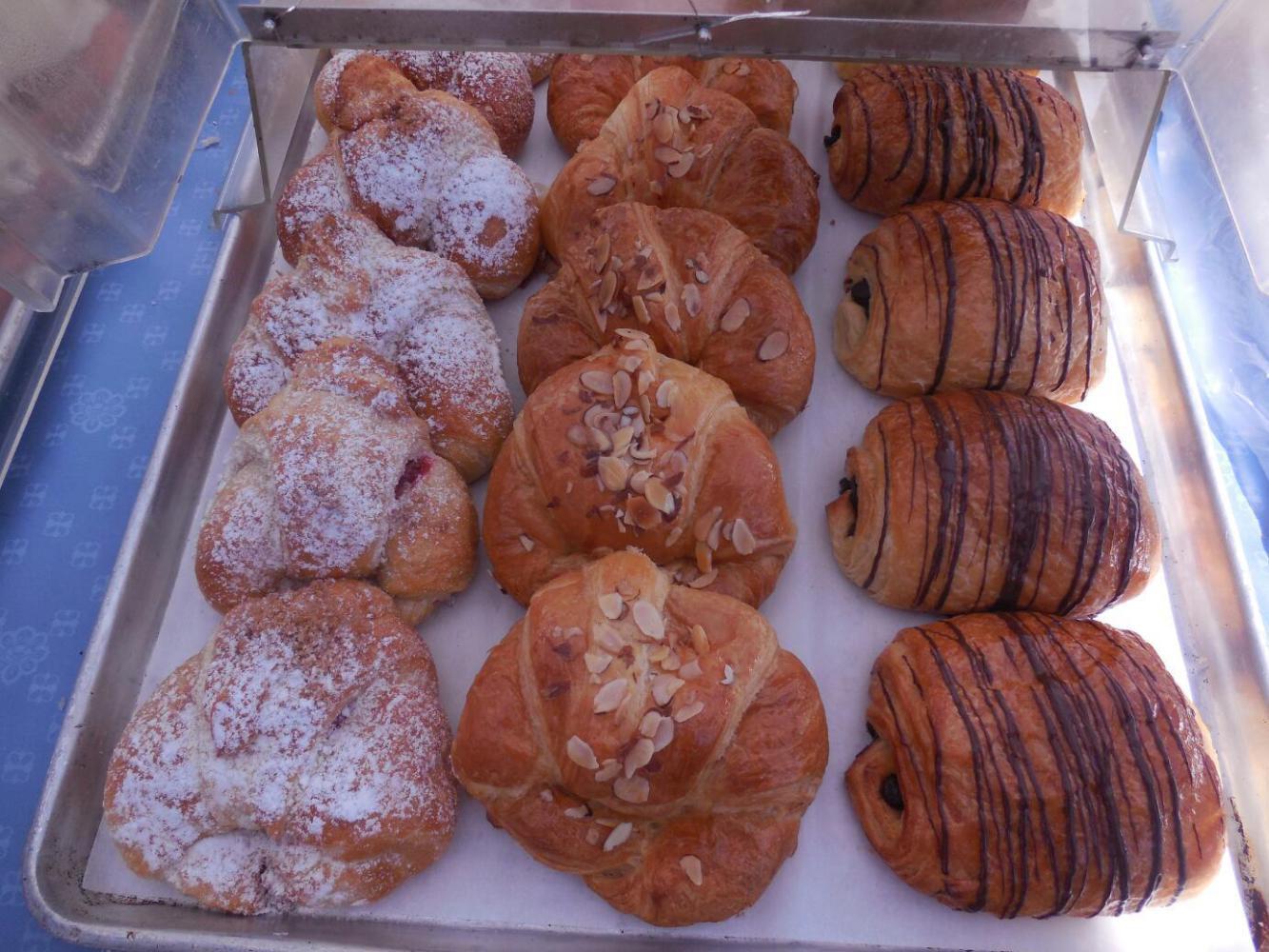 While up among the trees we could eat a picnic in just right cool conditions in the forest. The things we brought from the farmers' market were amazing, because almost each thing was of the highest quality you can get anywhere for that thing. That is, the bread, the sheep cheese, the plum tomatoes, the cheese danish, the muffins, even the darn water - were all the best. Wow. Even the strawberries, not mentioned in the above list because they were from California, were pretty darn good.