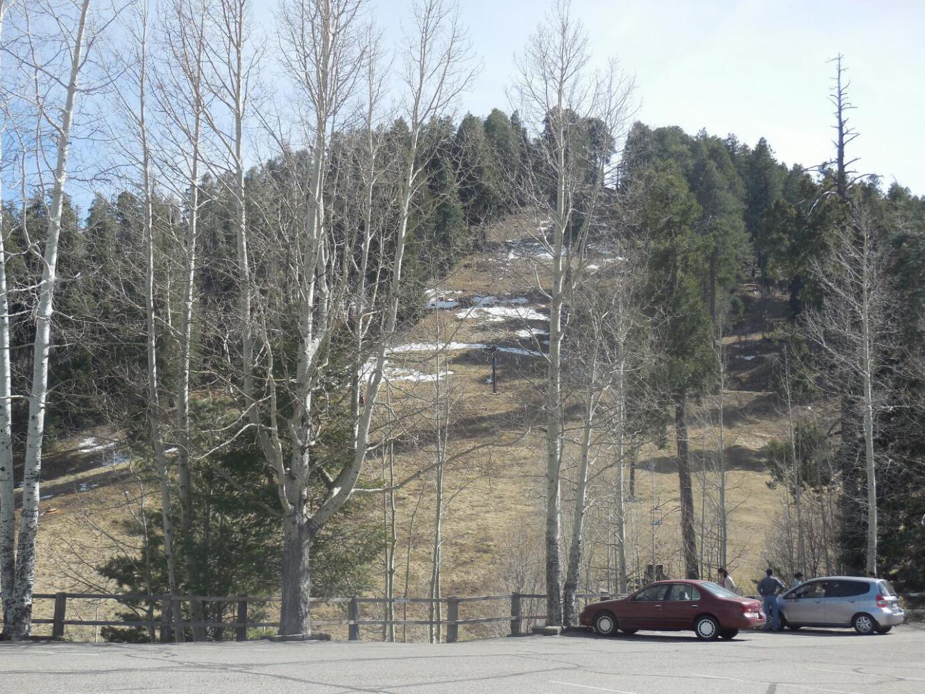 At the very top, there is still a little snow, and a ski area - not in operation this late in the season. There is also the village of Summerhaven - not low lying adobe but chalet style pine construction. The village was devastated by a forest fire a few years ago, so many of the chalets are newly constructed.