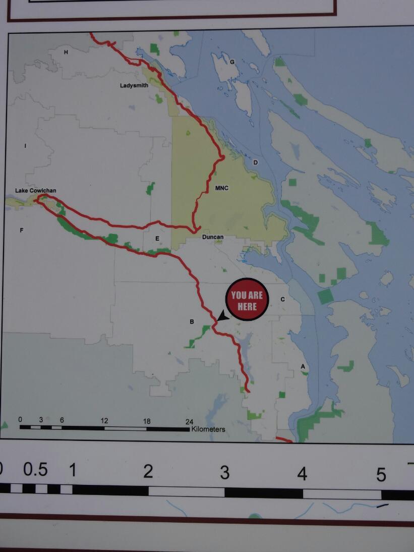 Here on south Vancouver Island there is usually good weather for cycling. It's clearly the best in Canada. However, because this is still North America, there is not exactly an overwhelming number of good bikeways. Nearest to our home, there is a section of the Trans Canada Trail, that includes one large former rail trestle, and a gravel trail to the Cowichan River and the village of Lake Cowichan.