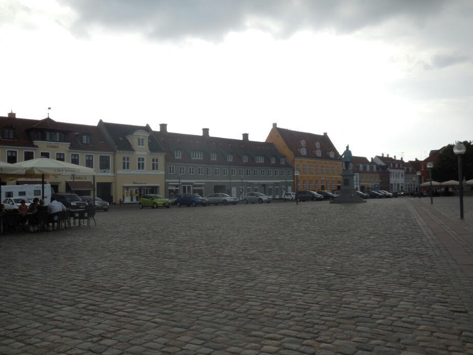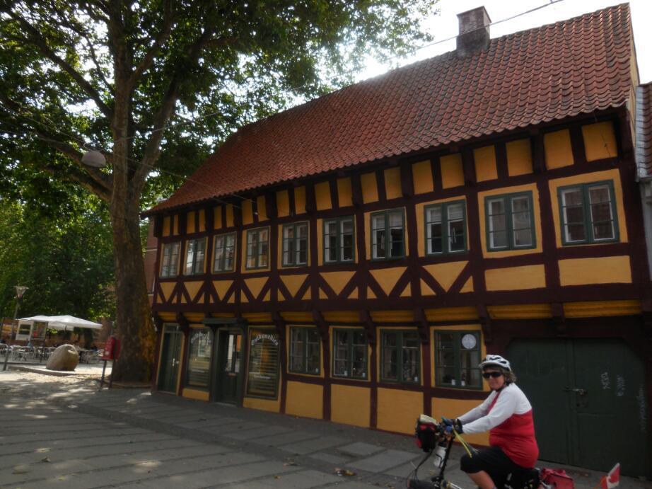 The cycling on-51 was totally boring, and a head wind also made it tiring. Approaching Koge, boring also became ugly light industrial, yet our notes told that Koge was an old and beautiful town. So we veered off, toward the town centre. Indeed, it did pass the "town" test, with intriguing row buildings, a square, cafe, and old church.