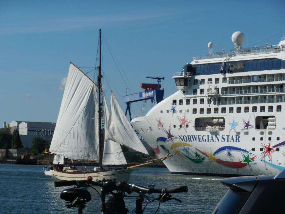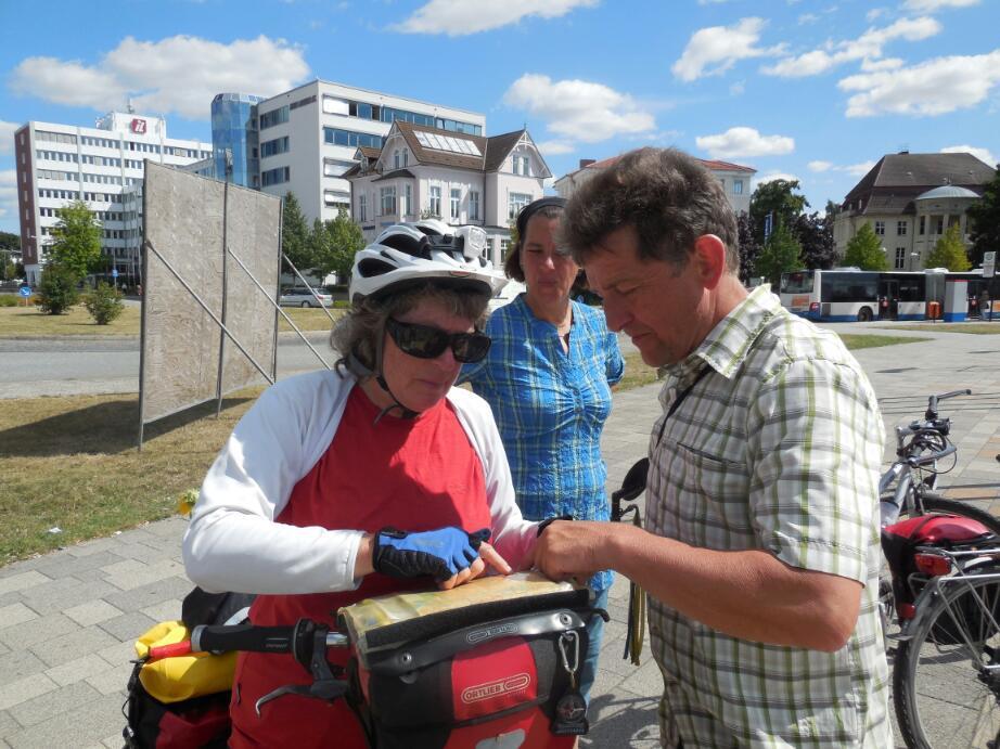 Thomas and Karin led the way from the camping west to a little ferry across the harbour mouth (to Warnemunde) and then on south to Rostock proper. This little southerly leg is actually about 15-20 km, of very undistinguished city scape. Still, we these expert guides we didn't have to think about the routing, which was really great.
