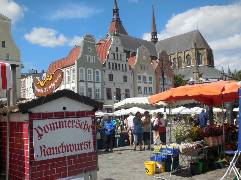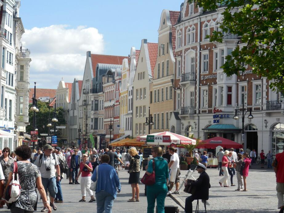 One of my first things was a pamplet about the city's former gates and fortifications, picked up as we stopped at one of those gates - the Kropelin Gate, which dates from the 13th century. This is one of 12 gates and walls still visible around this once fortified city. From the Kropelin, a pedestrian street lined with beautiful buildings, filled with retail shops, restaurants, and bakeries, led to the rathaus square. It's the usual pattern, but the one we love to explore.