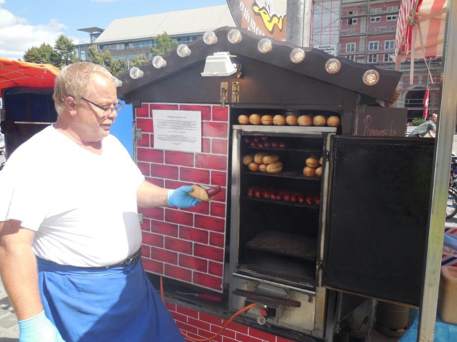For right away, there was a man with Pomeranian smoked sausage, complete with smoke pouring out of his stall apparatus. It came on a bun (high quality, naturally), with German mustard. Really super!