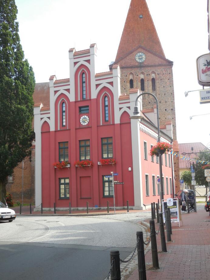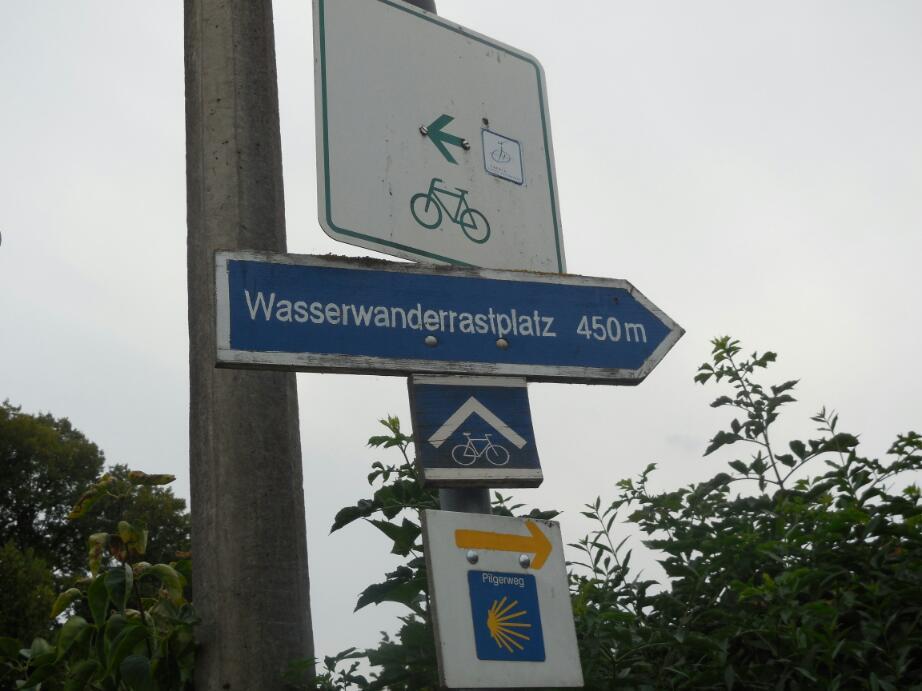 From Rostock on the radweg, the little towns just clicked by. The signage was perfect, as we introduced ourselves to the German section sign logo. The Bikeline map showed a camping in Butzow, but the Leparello did not. As we entered the town, the camping did not pop up where expected. However a nice church and building scene did appear, and I pulled out the camera, as usual while still cycling. Looking through the camera, I sailed past little a "wasserwanderer" camping sign. But Dodie caught it! It turned out to be a canoe club - our favourite, because thhey tend to have lots of available facilities at reasonable cost. So it was here, for 12 euros including immaculate showers, and covered tables.