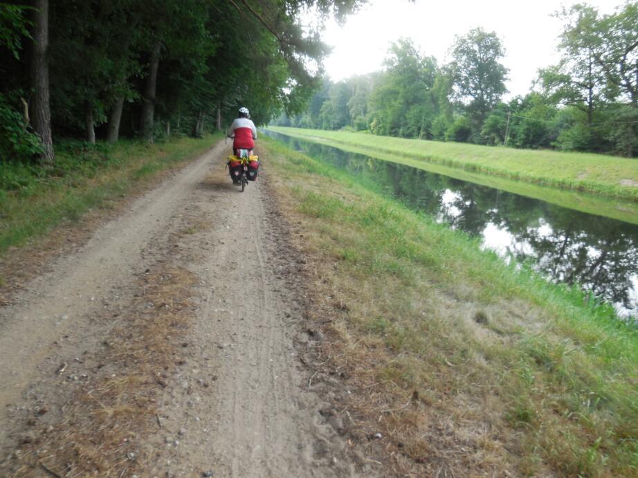 Outside of town we hopped on to the Butzow-Gutzrow canal, and of course headed to Gutzrow. There are a number off small rivers and canals here, and it seems like just the area where Dodie's dad, Walter, would have come with his fold boat. One of our main reasons for coming to the Berlin region is to look at the places where Walter spent his early years. He often mentioned fold boating (and cycling), so things are taking added significance for us as we pass into this region.