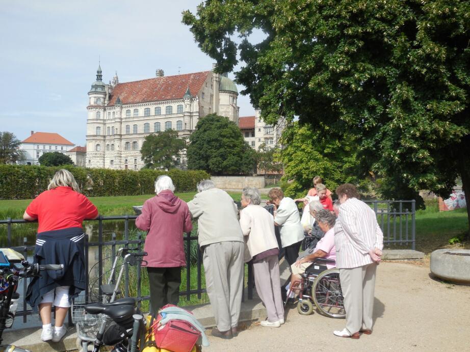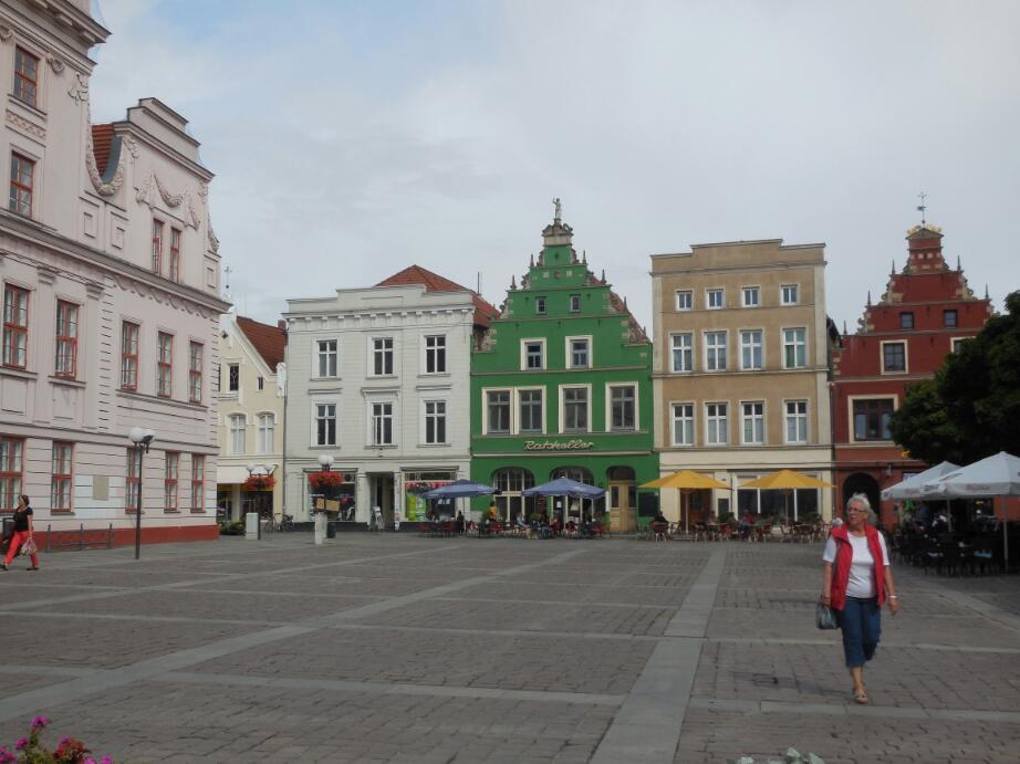Gutzrow features not only a central square, but also a post office (good for postcards home) and a chocolate shop. I dropped about a euro each for some little chocolates there - good quality, though. There is also a schloss, with a large moat, and in the moat - swans. We watched a group of old folks, sheparded by young (er) attendants, who had come to look at the swans. Two of the old folks were clearly a couple, and it was touching to watch them together.