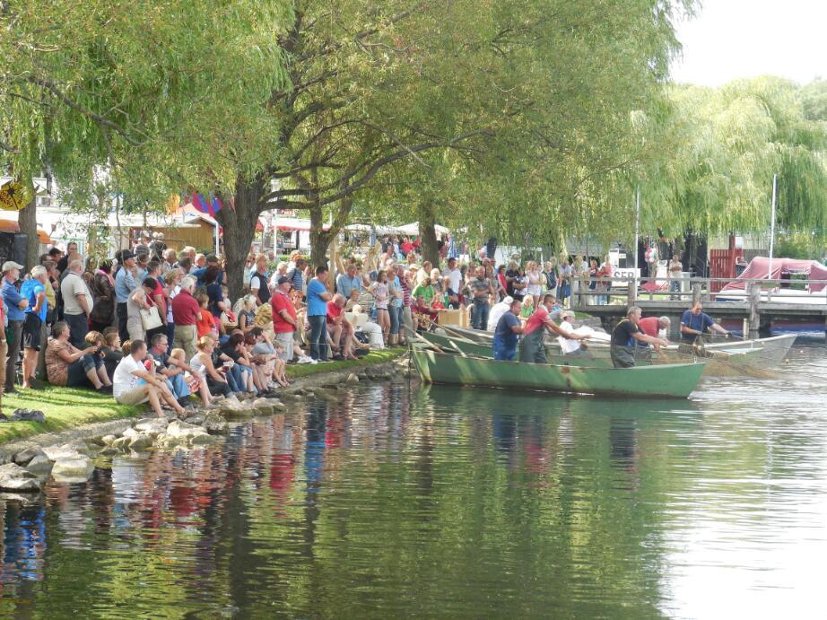 When we got to the resort town of Krakow, we found a "fishing festival" of sorts going on. There were lots of food and knick knack vendors around, and a crowd watching people draw fishing nets into a boat. It may have been a contest, and someone on a loudspeaker droned on and on about it. The people pulled and pulled slowly on the nets, for a long long time.