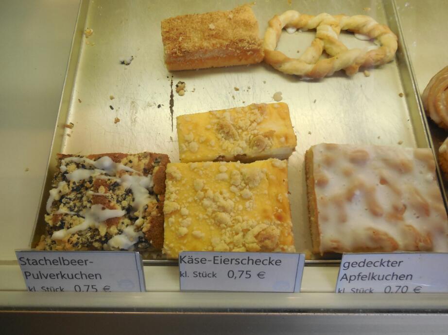 Also brilliant was the one bakery we found. The "drab" tray of squares actually contained some treasures: poppyseed with gooseberry underneath, and a cheese one as good as ever I have tasted!