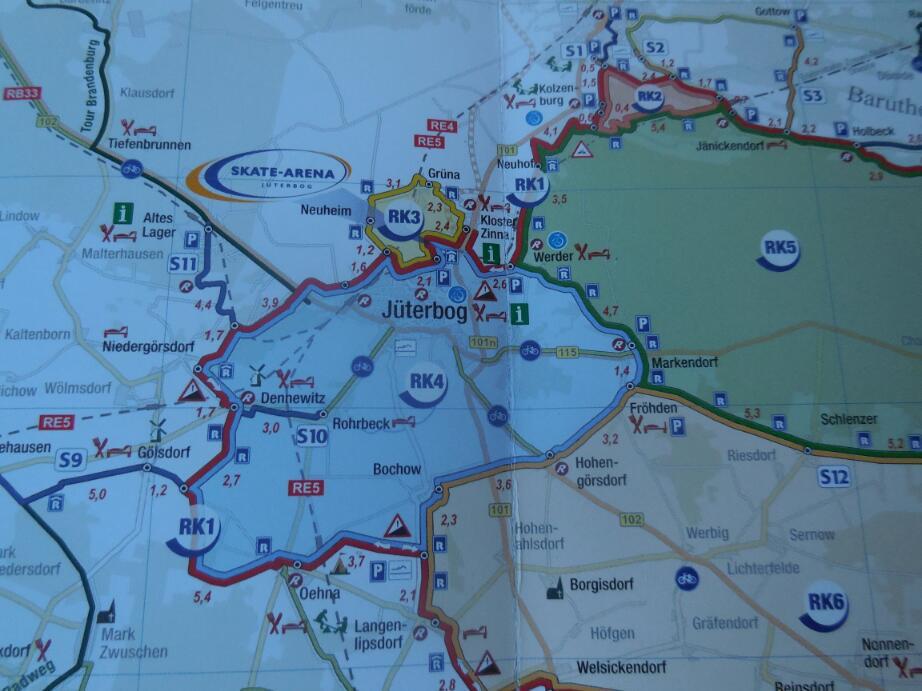 Juterbog contains Germany's most modern skating stadium, and 200 km of specially created smooth skate and cycleway, in eight circuits of varying difficulty, including an 83 km cycle circuit through the countryside and including a wildlike park.