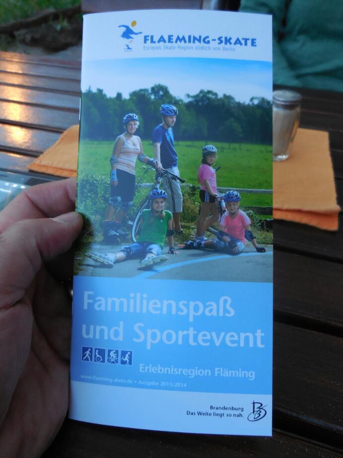 Why suddenly so many skaters? We had stopped briefly to look at trailside maps for any sign of camping. Trailside maps are common everywhere. So these said "Flaming Juterbog - something, something". Thought nothing of it, and still no camping.