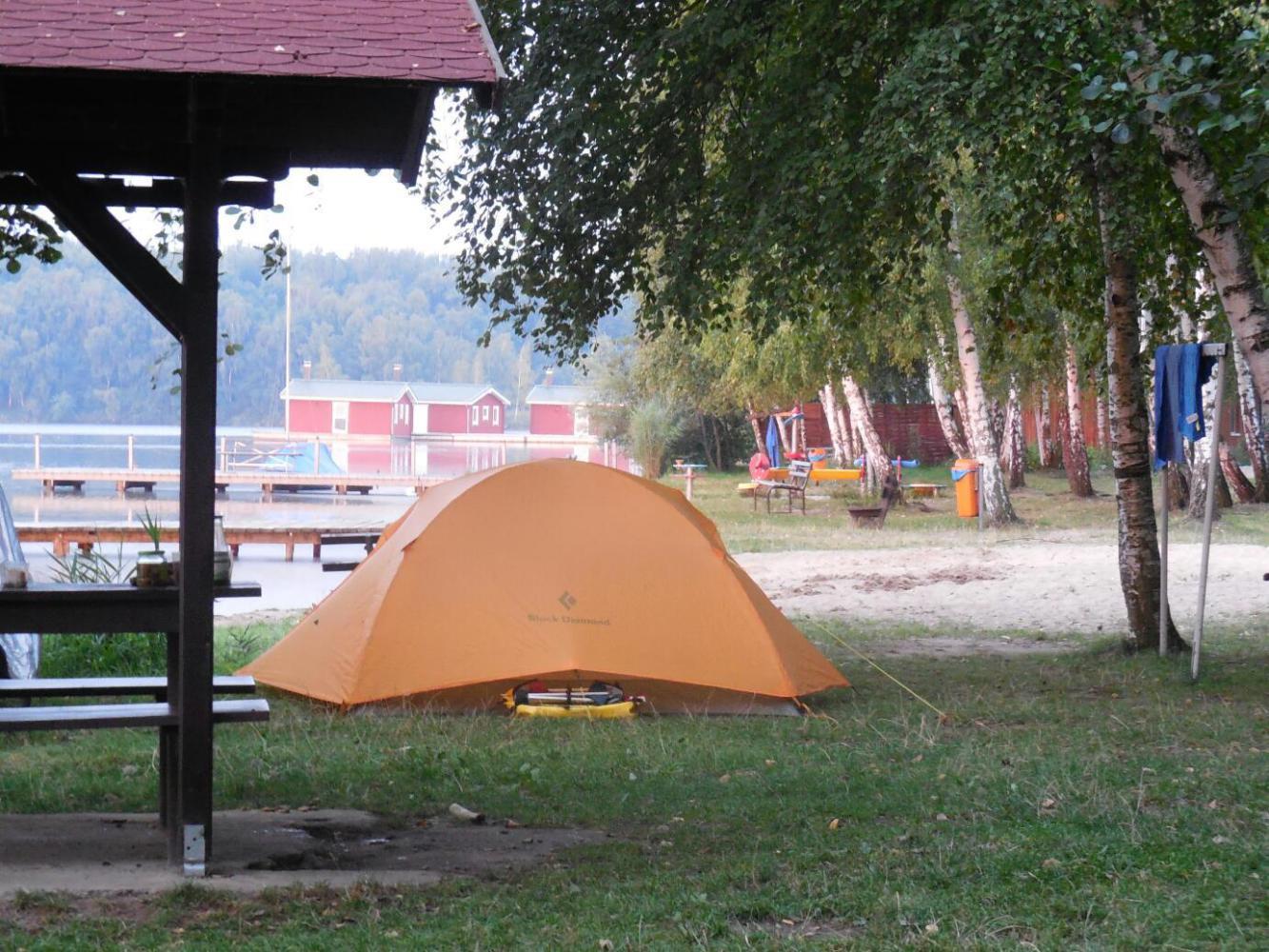There was only one table for the people with tents, so we shared it with a family from Leipzig. This is a difficult situation, blog-wise, because there is a tendency to talk to your table mates, rather than write on the tablet. However the blog has another problem - shortening daylight hours. So I did some blogging, until the light failed. After that, one can of course use the headlight, but then it will shine in your table mates' eyes. Nothing to do, then, but talk all night!
