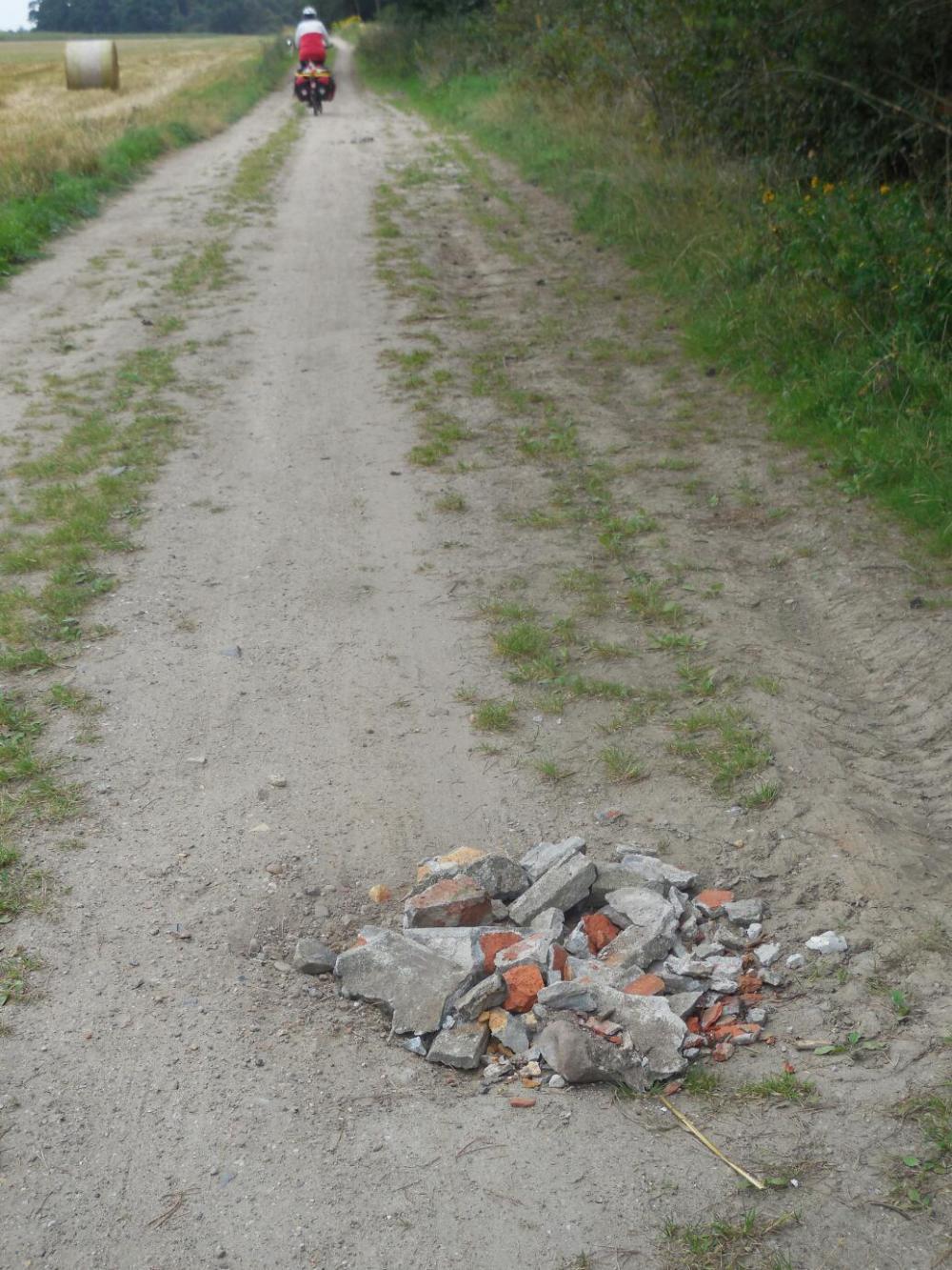 With loaded bikes and little wheels, dirt track means slow and difficult going.