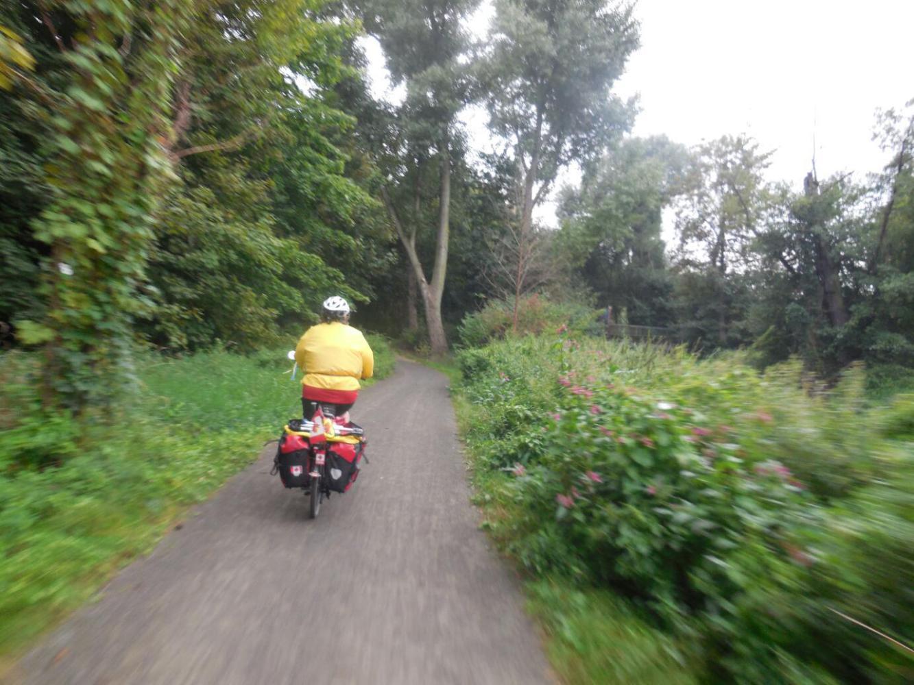 We left Sebastian, Nadine, and Franck to speed on ahead, while we slowly cranked our way. We got lost and wound up on a no shoulder high speed road, retreated, found the radweg, found it blocked off by construction, and fought through that to earn the right to crank slowly on rutted dirt in the forest.