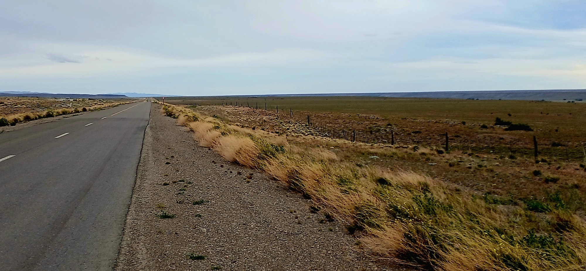 I set off again, climbing the hill, struggling against a crosswind for a few kilometres before the road swung left to follow the customary south-southeast. The sky had latterly become extremely dull as a haze of dark blue cloud blew in as the wind got stronger. And the road surface which had many potholes, deteriorated further. Vehicles had slowed down and weaved around to find the most intact surface. Even the big Chilean trucks that use the route were reduced to walking pace as they negotiated their way around an assault coarse of broken road surface. Some remained on the road while others took to temporary gravel lanes either side.