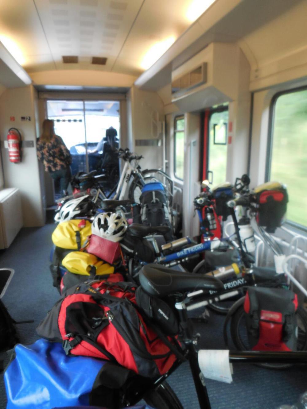 There did turn out to be an elevator at our departure platform, but we missed seeing it. Good news, I only injured myself a little on this escalator with the loaded bikes!