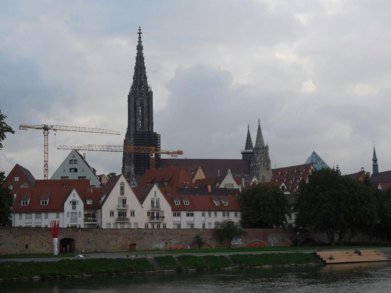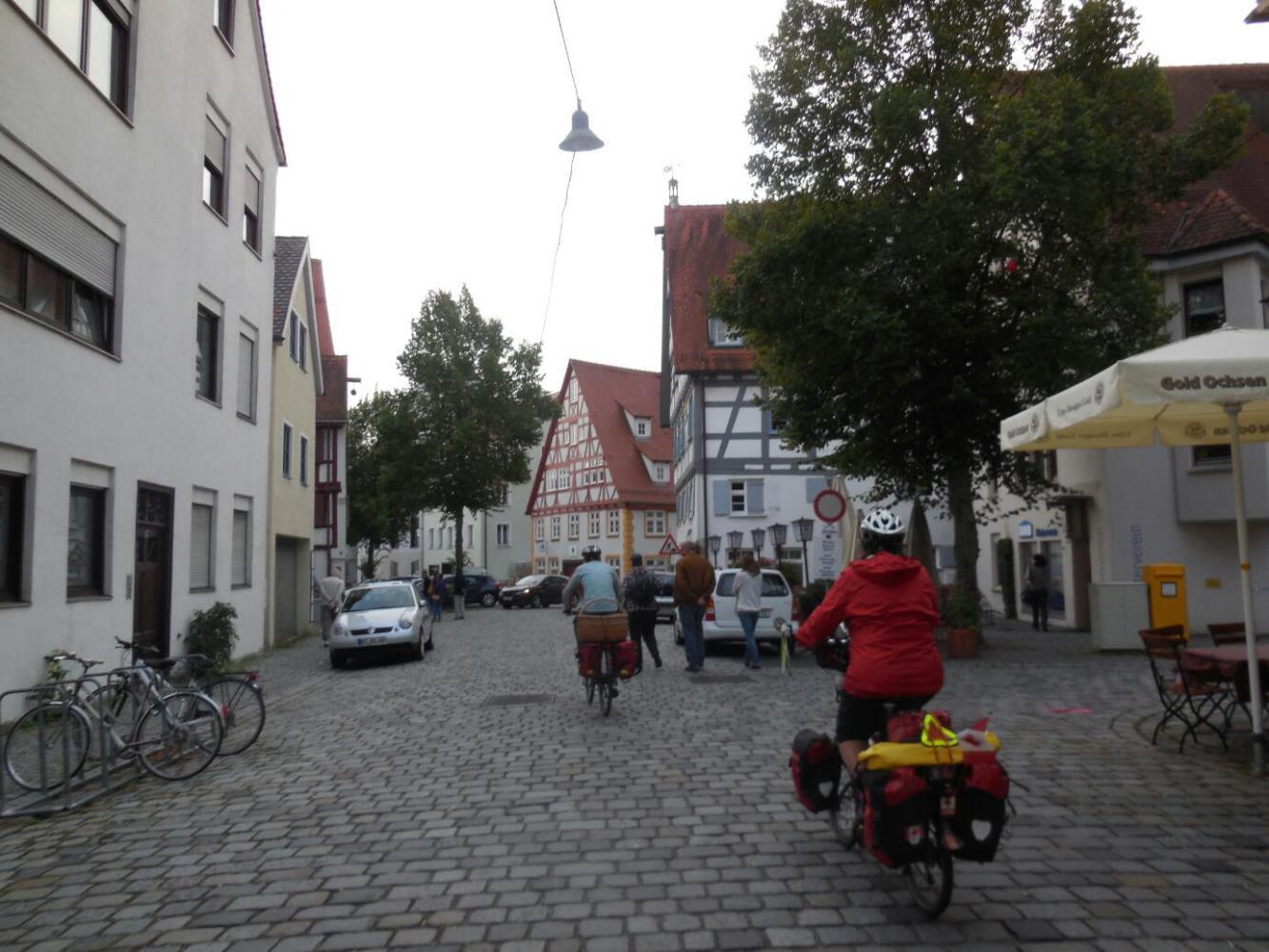 Exiting the station at Ulm, our third time here, we were no longer put off by the slightly scuzzy urban scene. We got oriented, headed for the river, and got immediately lost. No problem, a road angel - Dieter - appeared out of the pavement and lead us to the river. He took a bit of a back way, past some half timbered houses and over cobbles. Yikes, we are back in half timber land!