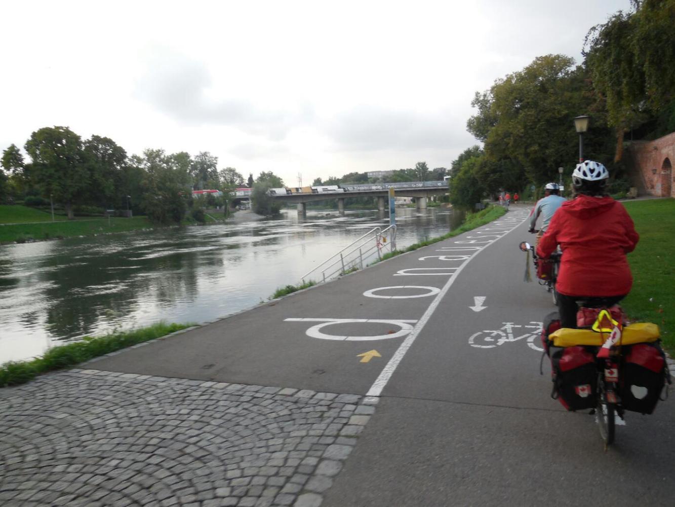Once at the river, our two previous visit here came back to us. Hello Donau! The only difference is that this time we researched and found a camping place! Last time it was wild camping for us by the river. This time its the canoe club. We really like canoe clubs, in part because the people are sports oriented, something that helps limit the number of giant wohnmobiles. In this case, we have a whole lawn, with tables, to ourselves.