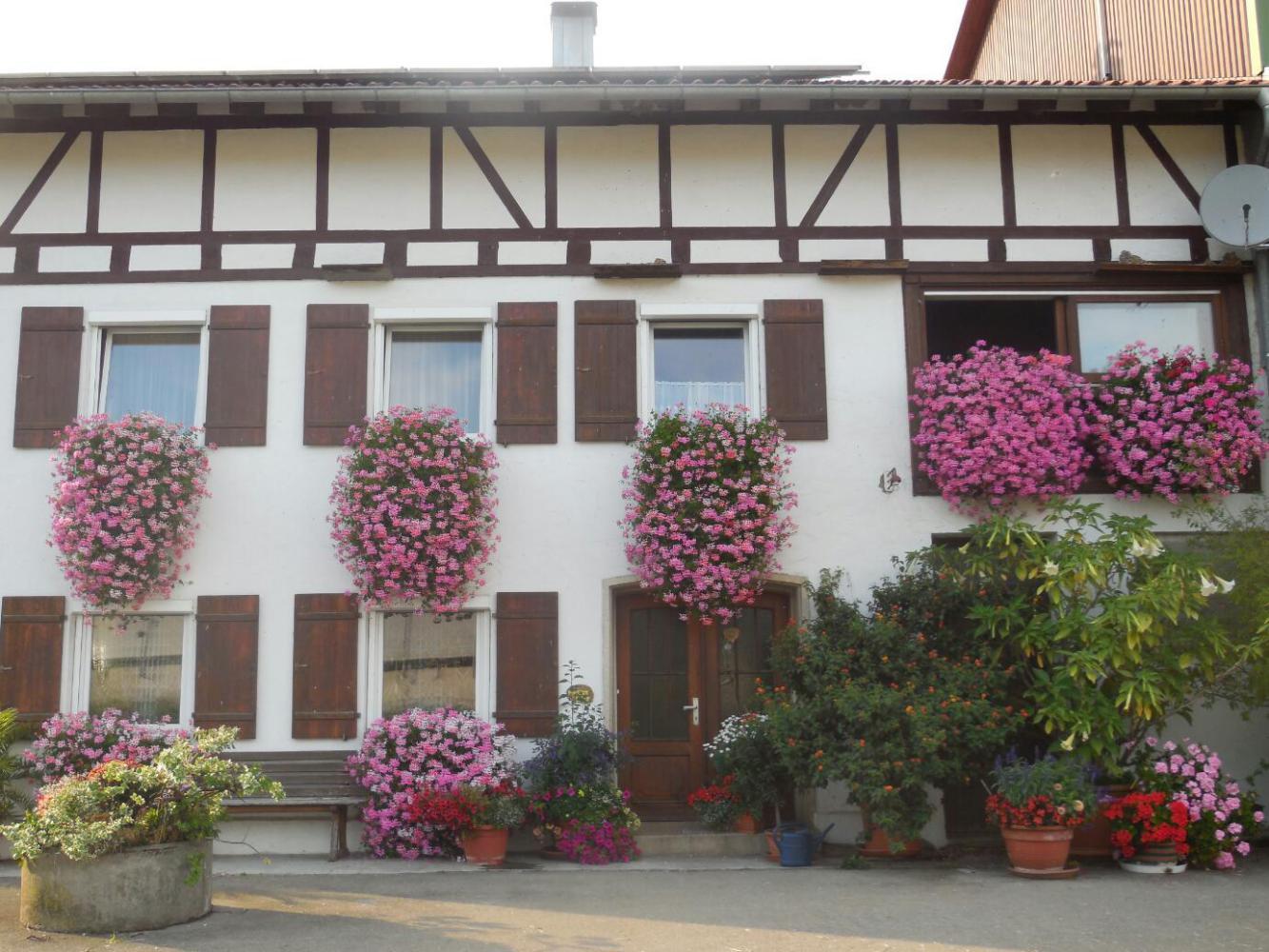 Many of the houses here seem new, and many roofs are covered with solar panels. Roofing is made of tile, as has been the case throughout the places we have visited this tiime. However the tiles seemed shinier in the north west. The image of houses with balconies, and from them cascades of flowers is sommething we associate with Austria. Here, it's close, but there are no balconies. Rather the flowers cascade from each second floor window. The flowers are generally red geraniums.