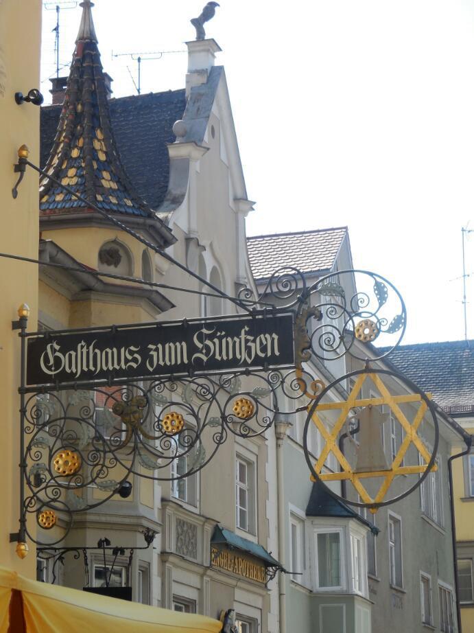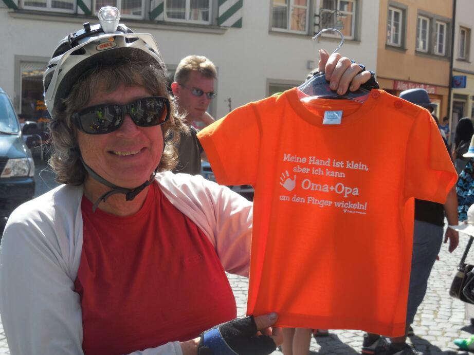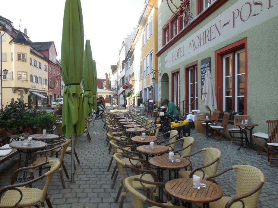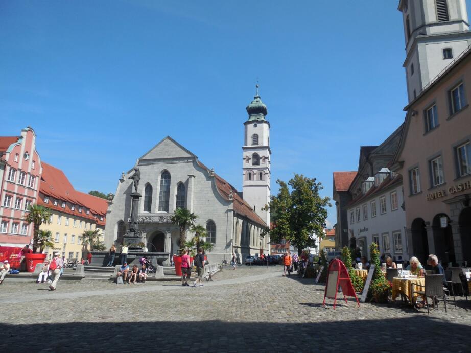 Over the bridge, then, and we were immediately cast in to tourist heaven/magnificent old town/cafe central. After we got past the "my grandma got me this tee shirt in Lindau" type shops, we arrived in the first hyper attractive square. With a church, fountain, cafes, and frescoed building, we at first took thisnto be the main rathaus square. No way, the building was "just" a museum. A people filled beautiful street lead deeper into wonderland. However, we just parked in the shade by the museum and ate our lunch. There, we answered some UQs, including from a lady from Greece, who also wanted a photo of the bikes (not us, apparently) We took the opportunityto ask some UQs about Greece, so that was fair.