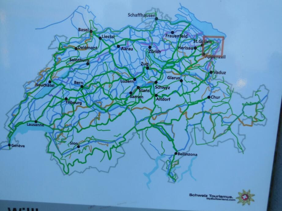 Beyond Bregenz, on the way to Rorsach, we paused at an unsigned intersection to puzzle about how to turn. Magically, as often happens, a road angel popped up. His name was Bernie, and he lives near here. Not only could he point us in the right direction, but he said since we were going his way, he would be our guide. So, for about 10 km, we followed Bernie. In fact, we followed him right into his driveway! Actually, he invited us for a cup of coffee.