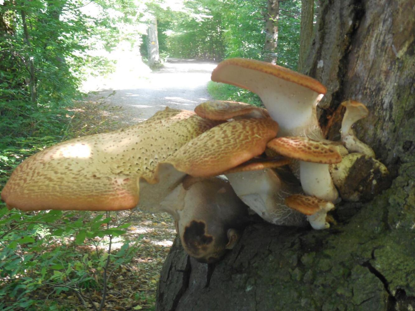 Our closed hunting lodge, or what ever it was, turned out to be a good choice. A lot of people passed by out on the road, but we were hidden in the trees, and the Bears did not come home. The bikes were good under the building overhang, and the picnic table was another luxury.