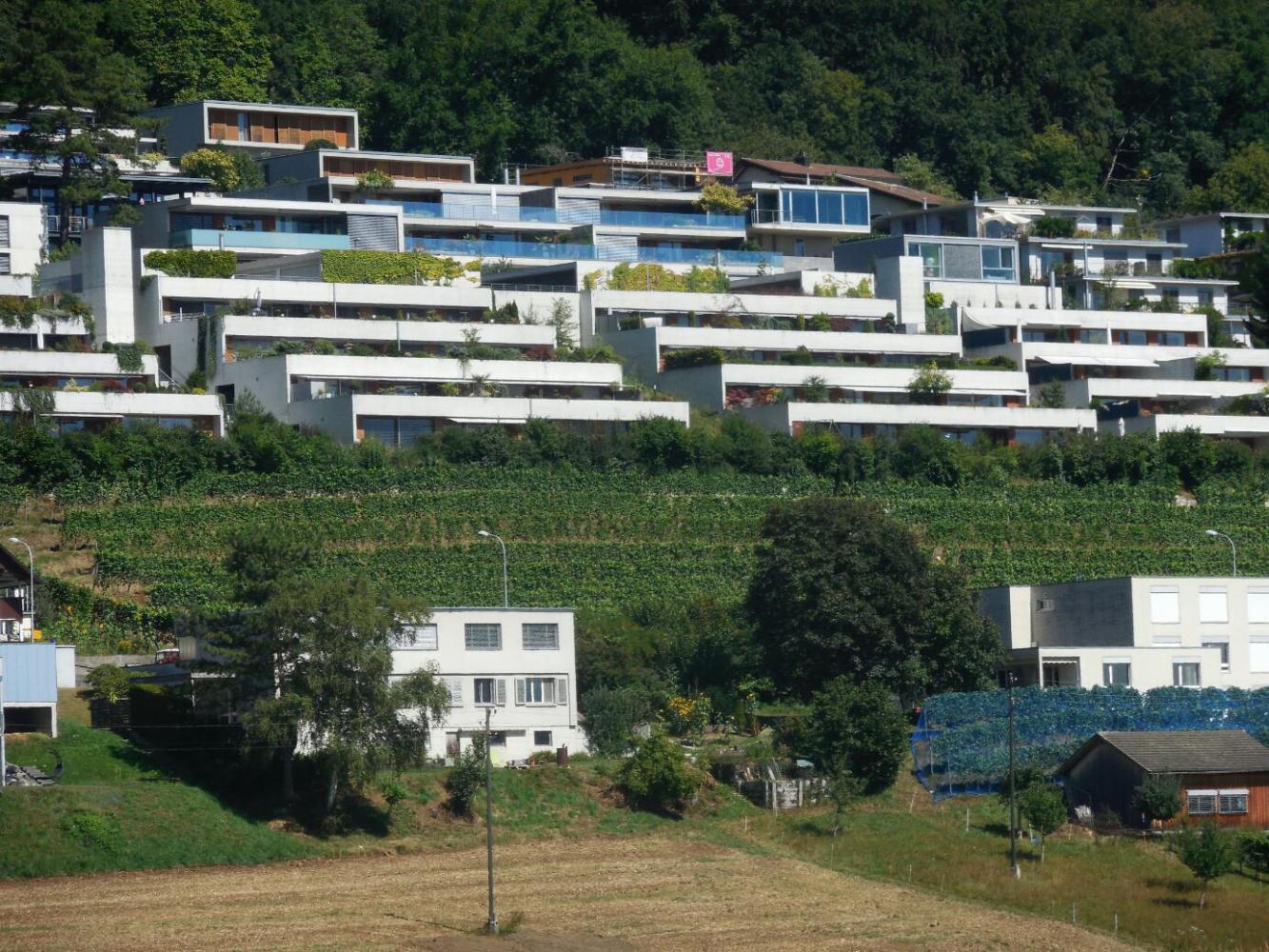 The Wurenlos area is basic, semi-industrial, and features what we now recognize as featureless "modern" concrete box houses. Maybe this is ultra design Swiss Modern? We think it sucks!