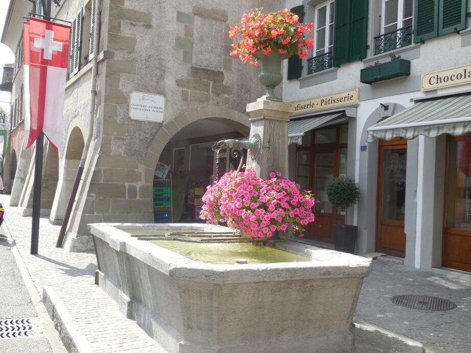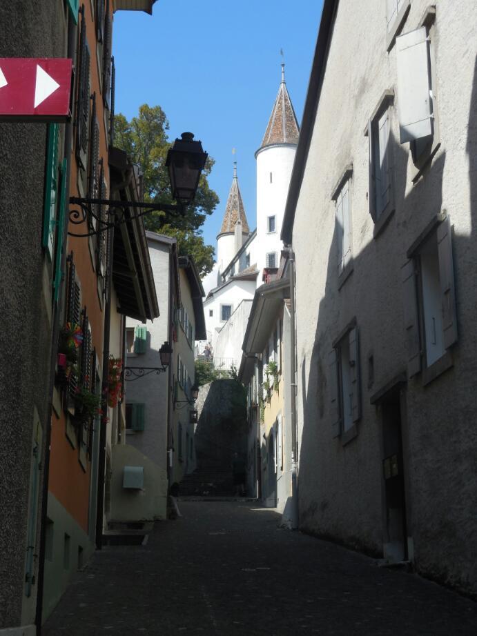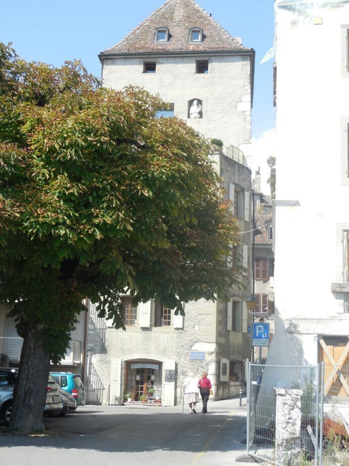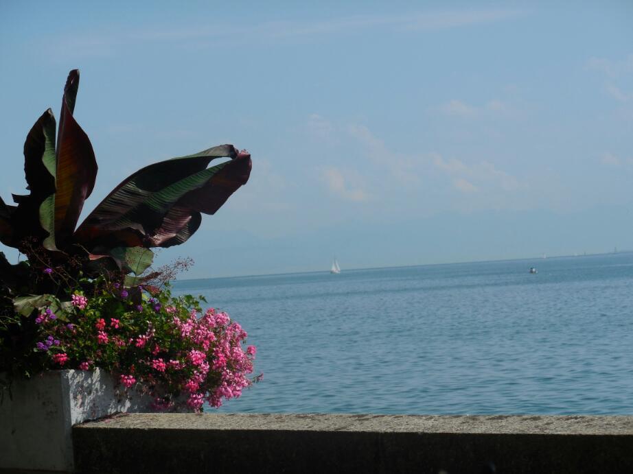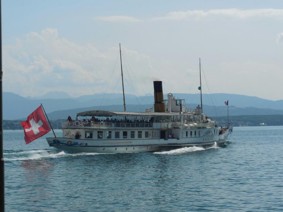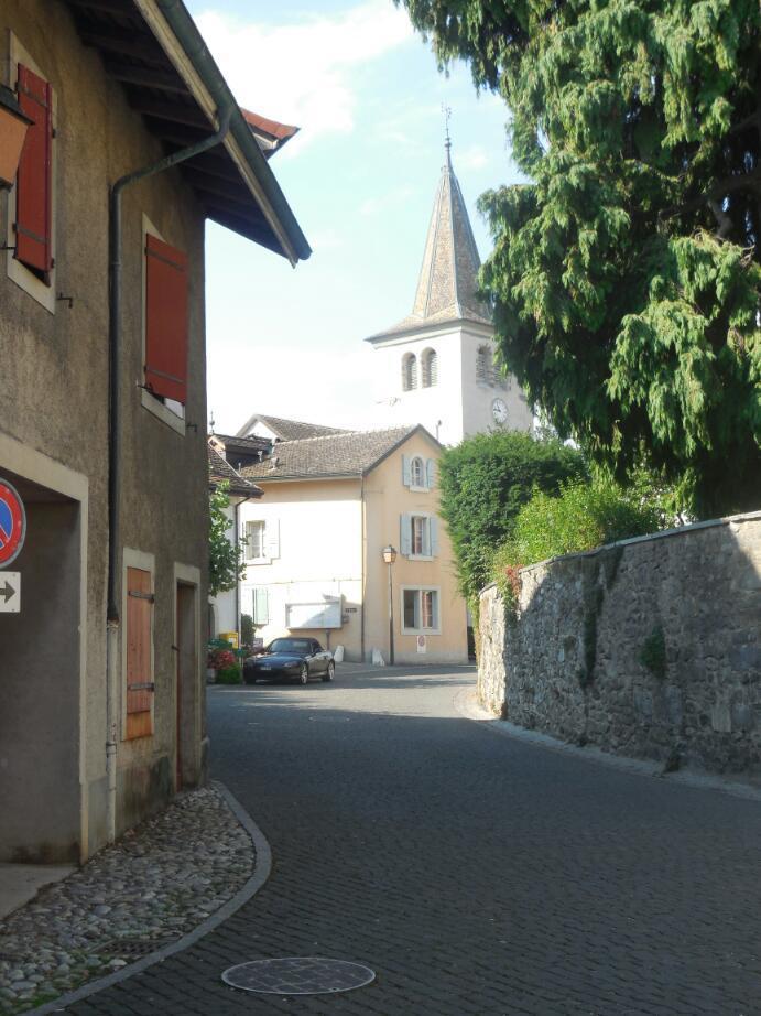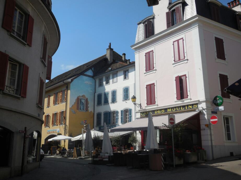 The car route 1, though, had more advantages. It took us through town centres, most notably Nyon. In Nyon were old buildings, a chateau, bakeries, many hotels, many cafes, and a lovely lakeshore walk area. Although a great spot, the Nyon prices were astounding, like 48 chf for a fish lunch! We ate our bread, cheese, and salami on a lakeside bench, thank you.