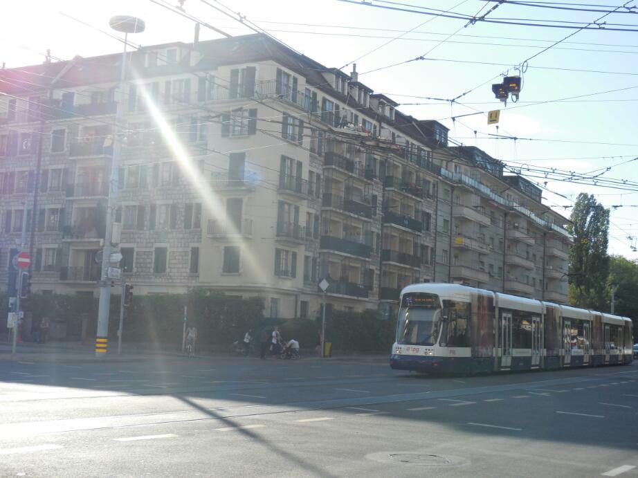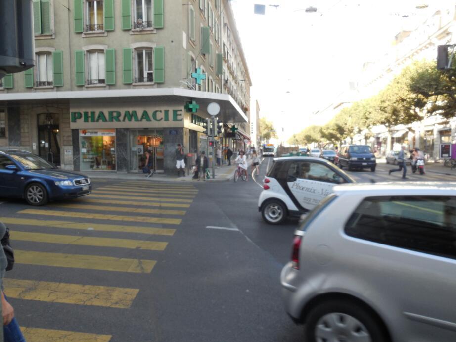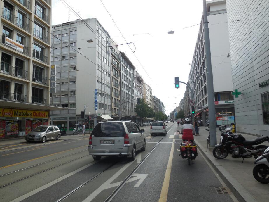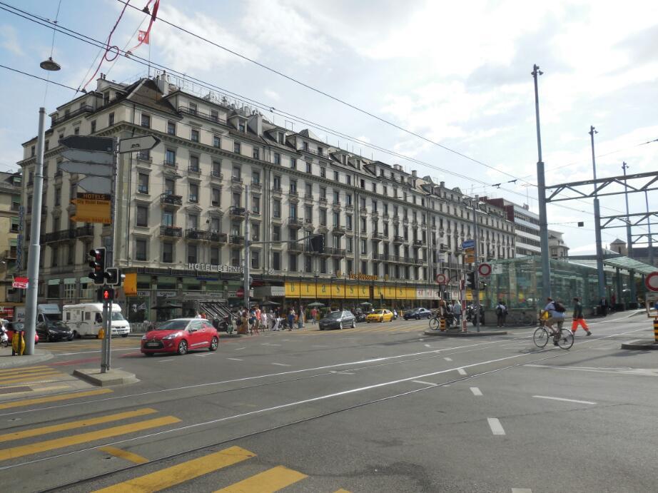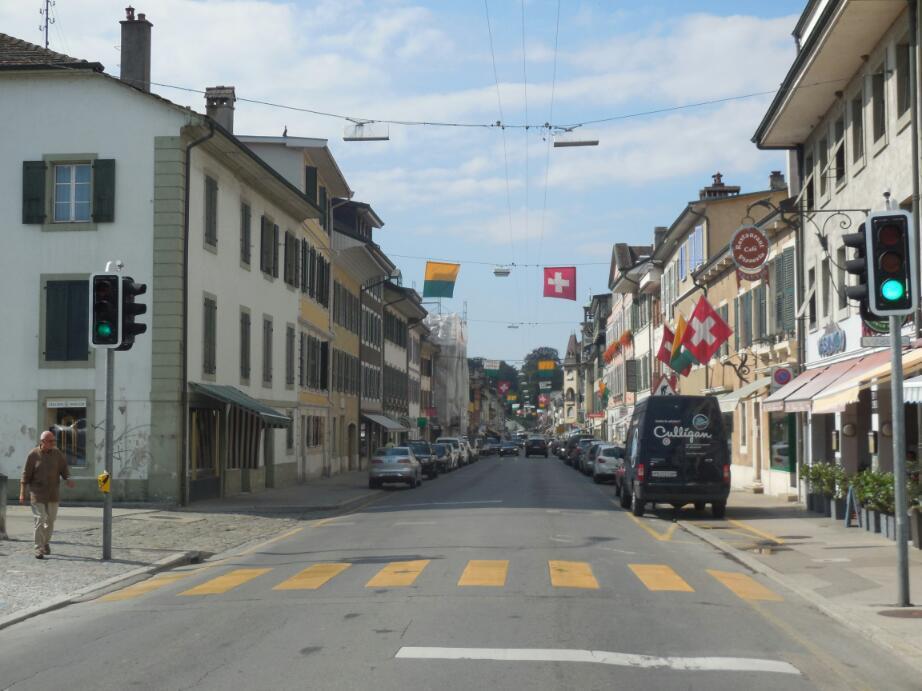 Geneva proved a big city with the look of Copenhagen. That is, lots of large but still relatively low rise buildings, lots of traffic, and wide streets with trolley service down the centre.