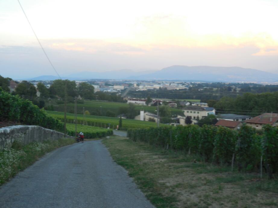 Eventually car route 1 took us into Geneva, but not before bike route 1 joined in too. We knew bike 1 would not foolishly hold out in the vines forever!