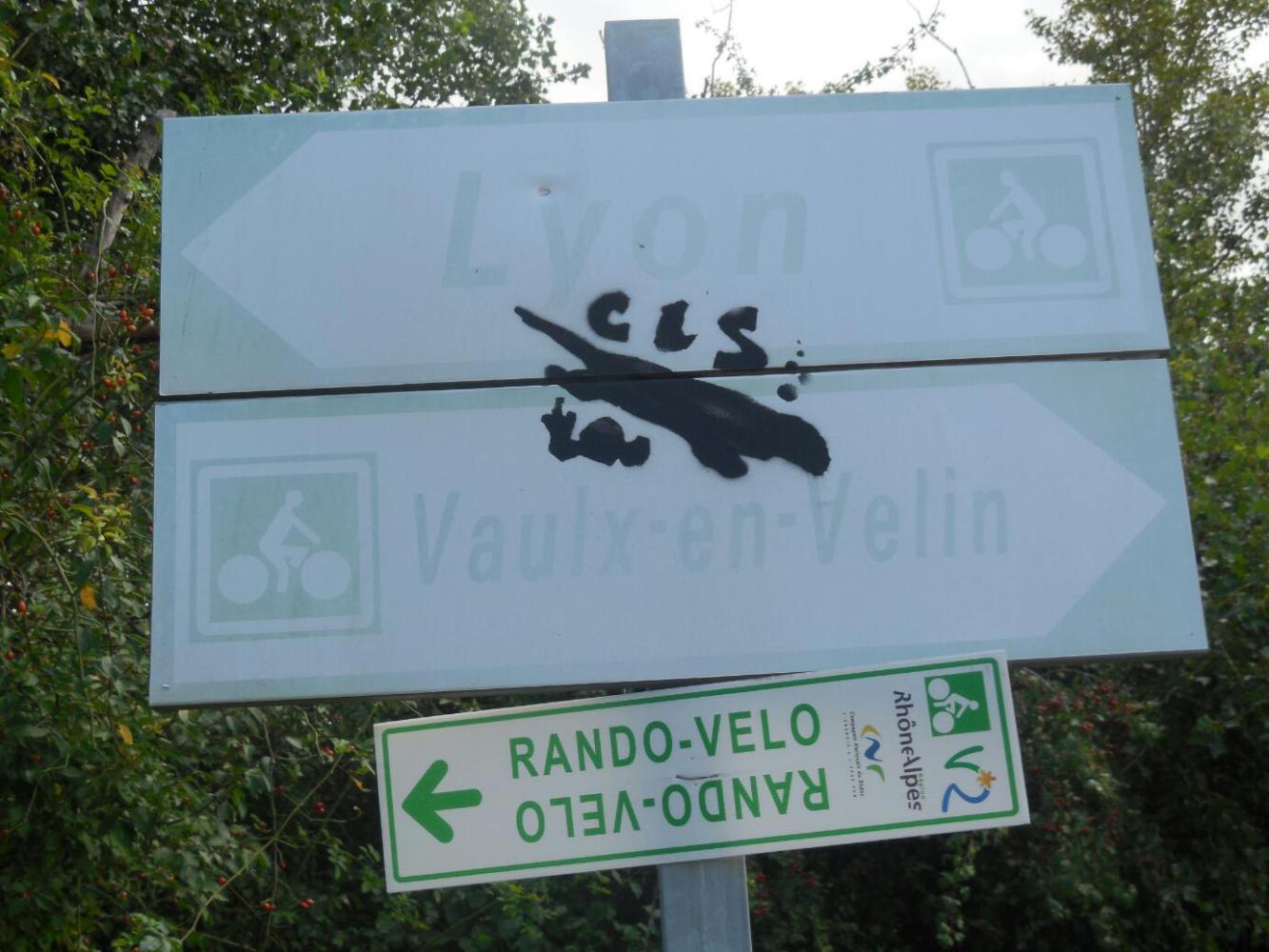 The one and only Via Rhona sign we found near Lyon.