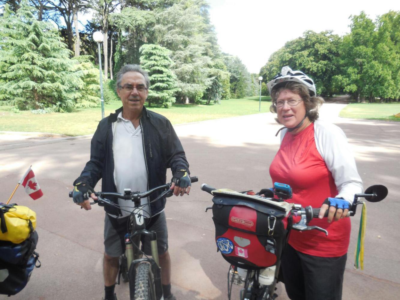 Good nature ran a little thin, as we battled traffic and no signage, as we escaped little by little fromthe city centre. Evening found us pushing the bikes up a long hill, with almost no shoulder between us and fast traffic, and many kms from any camping. So along came Benoit. He stopped his car and walked back to us. Would we like to come stay at his place? You bet!
