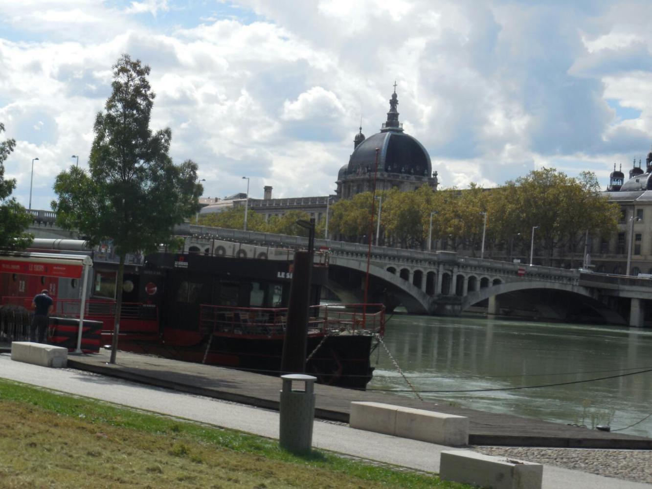 Along the river but at the centre of Lyonwe had a city like Paris or London, with many bridges, elegant buildings, and couples by the romantic banks. There were many restaurants floating at the bank, and we found a great quality daily special at one.