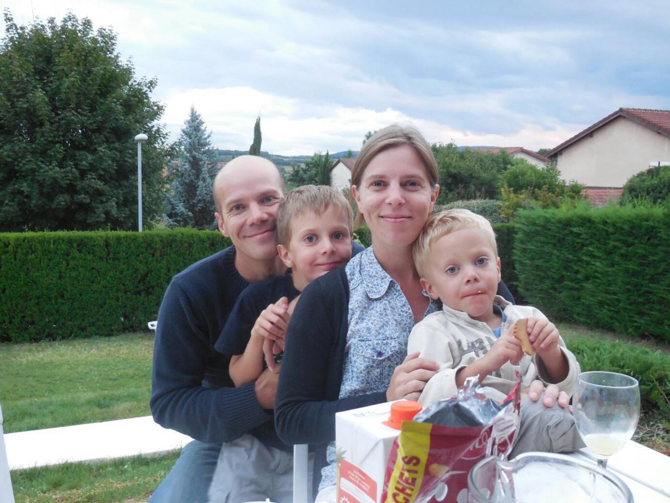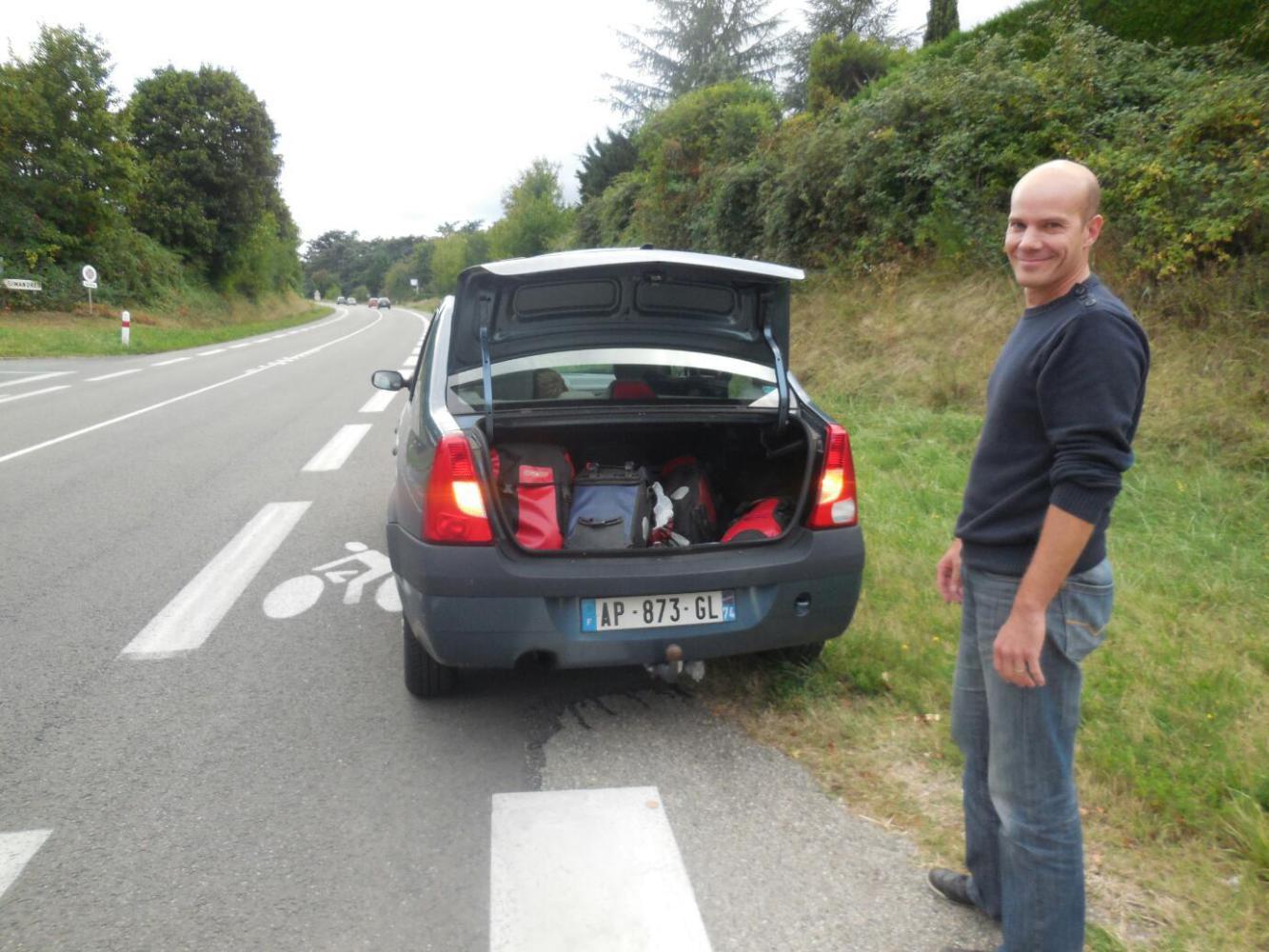 Benoit and Amandine and children lived a few kms further on, and with some further hills in those kms. Benoit went on ahead, and came back to check on us, with the kids along for the adventure. He threw a lot of our bags in the trunk and explained the next turns towards his place. We carried on a bit, and then Amandine came around in a second car, to help guide us in.