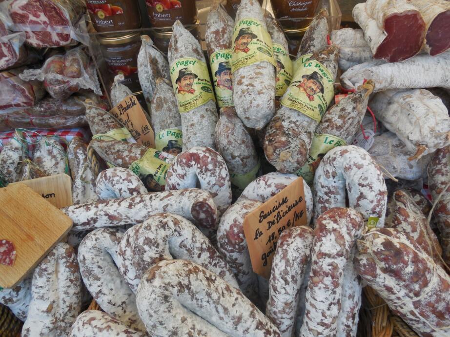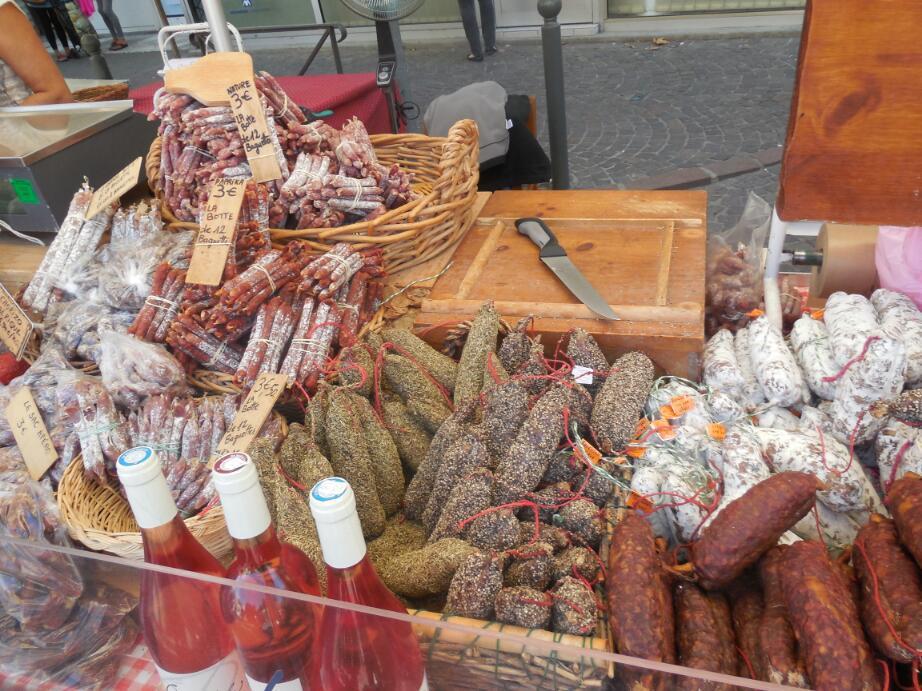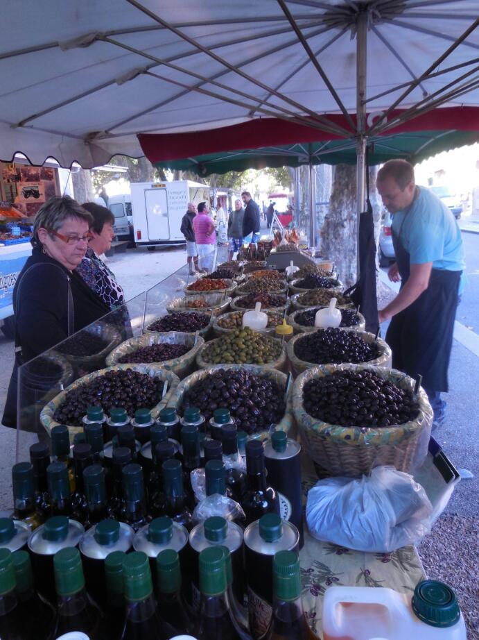 And about that casually mentioned market... my oh my, the largest number of vendors we have seen, anywhere, any time! The whole thing was packed, end to end, with shoppers. That assumes you could find an end, for it seemed to go on for ever, and round and round. There were cheeses and more cheeses, sausage and more sausage, bread, olives, and though Provence was technically over the bridge, lavender products of all types. Have a look at the photos - we had probably seen this all before in food or travel magazines, but this is real, and we are really here. Waaah!