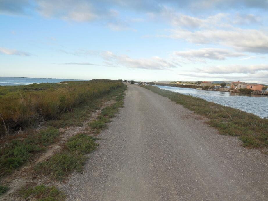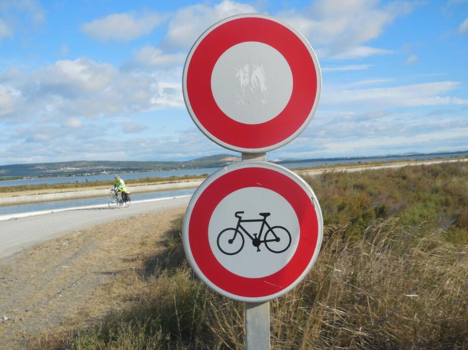 After about 10 km on the canal path, we had successfully cut out about 20km of road, so saving 10 km. by the time we arrived opposite Frantignan. Frantignan is effectively Sete, if you are in a car, that is. In our case, though we could see Sete, we could not reach it. We judged the no shoulder big road too dangerous, and other roads went nowhere. We stopped to ask some construction workers, who were busy wrecking a small and possibly usuable road. One said try swimming, but his more serious coworker said we would have to return to Frantignan village and go from there. So that was 5 km backwards.