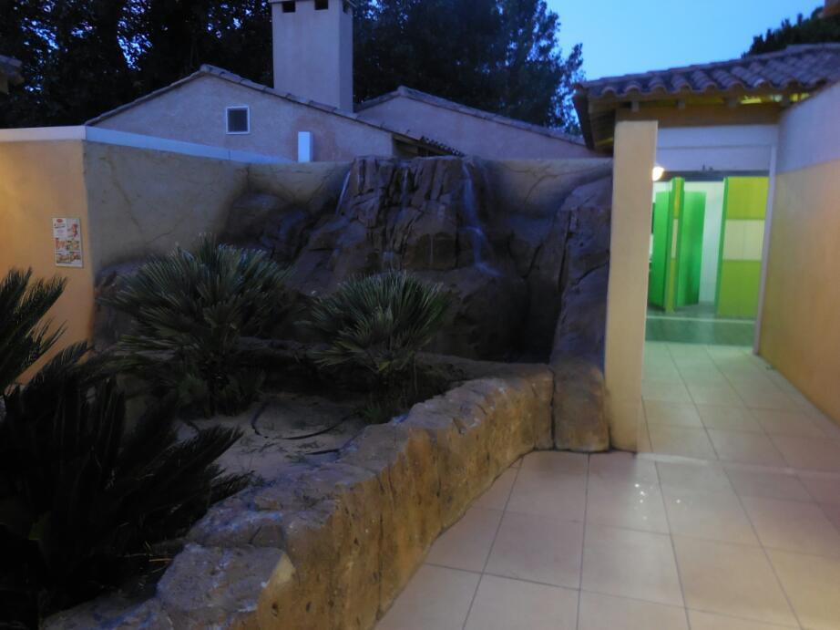 Aside from the elegant restaurant, this camping has a pool and lots of other amenities. A first is washrooms around an inner courtyard, with sculptures and a fountain. This night, any wild camp would have done for us, but now, I am looking forward to going to try out the washrooms! It's easy to please a cyclist.