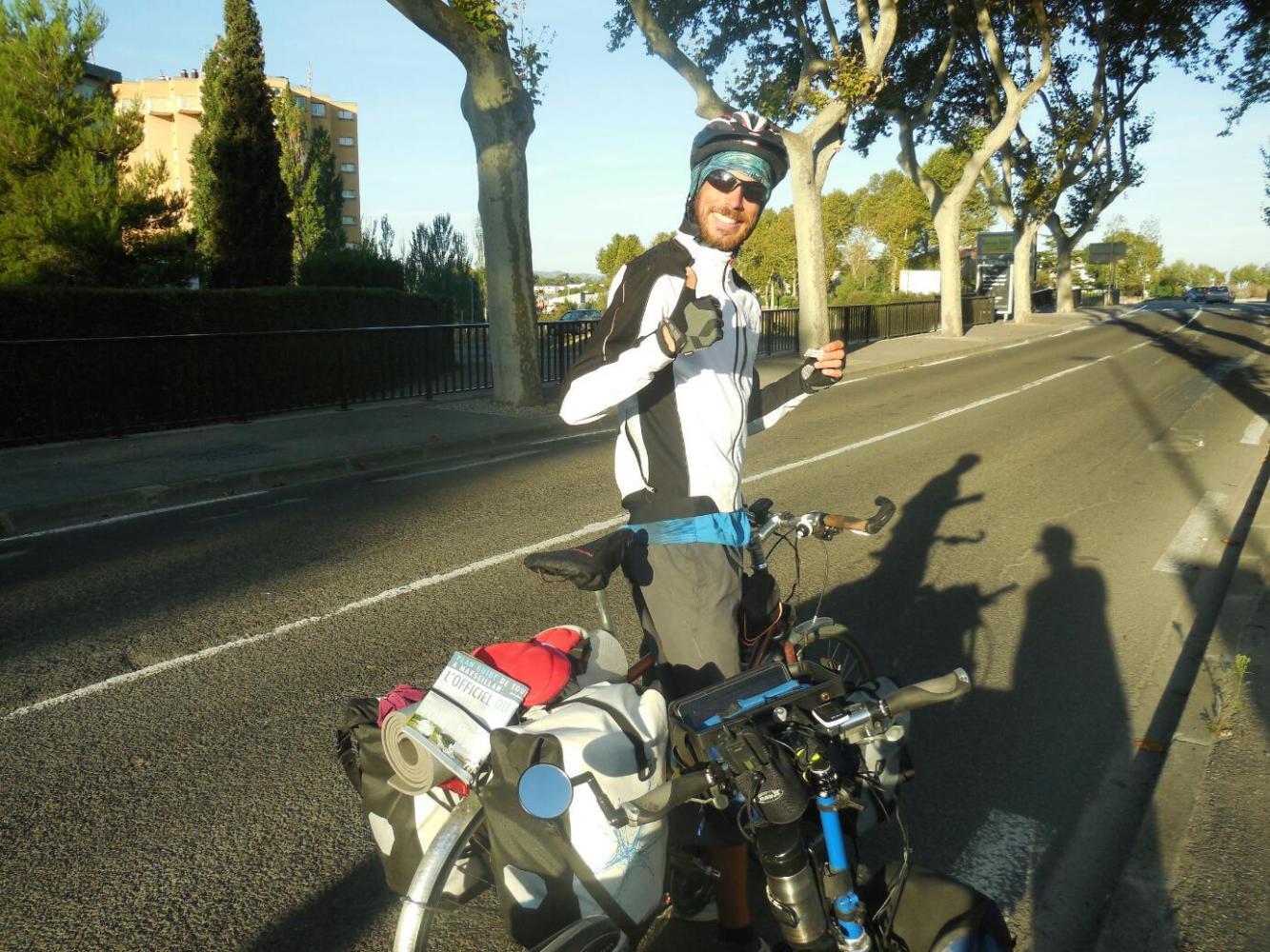 No wind this morning!! We headed out of town as quickly as we could, before it might decide to turn on. Near us in the tent meadow yesterday had been several long distance tourers, but we were too beat and/or rushed to speak to them much. This is very uncharacteristic for us. Still, one, Thibaut, left at the same time as us, and the tablet guided us all through the few twists and turns needed to get on the D33 toward Castelnaudary.