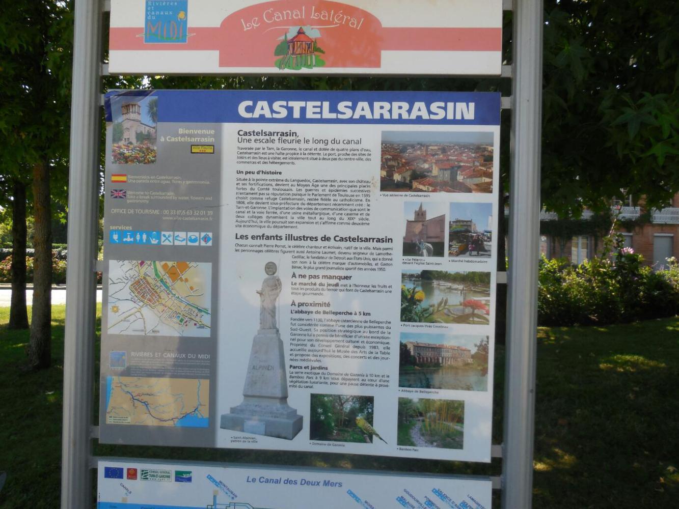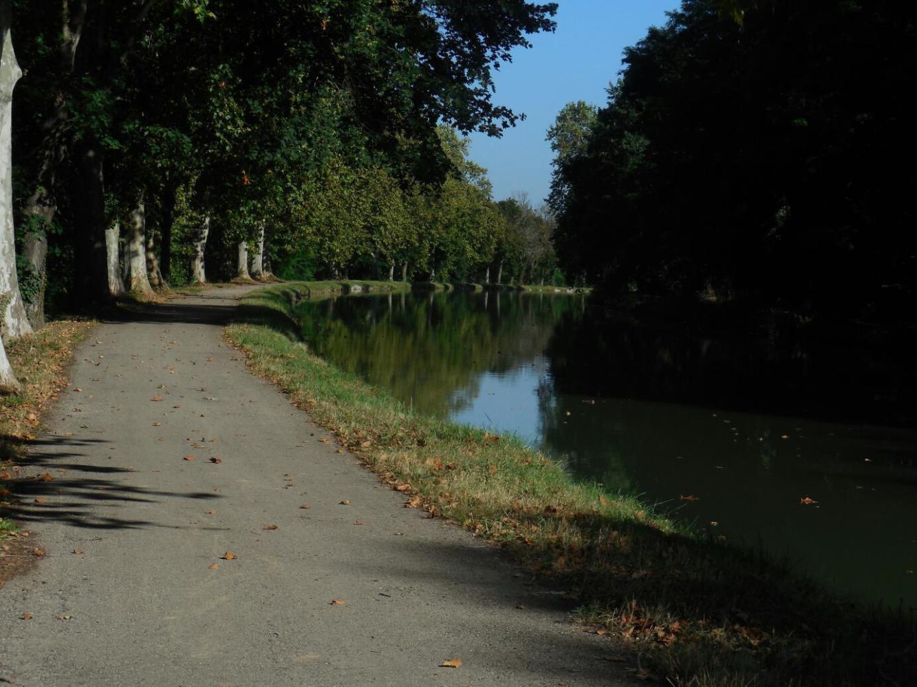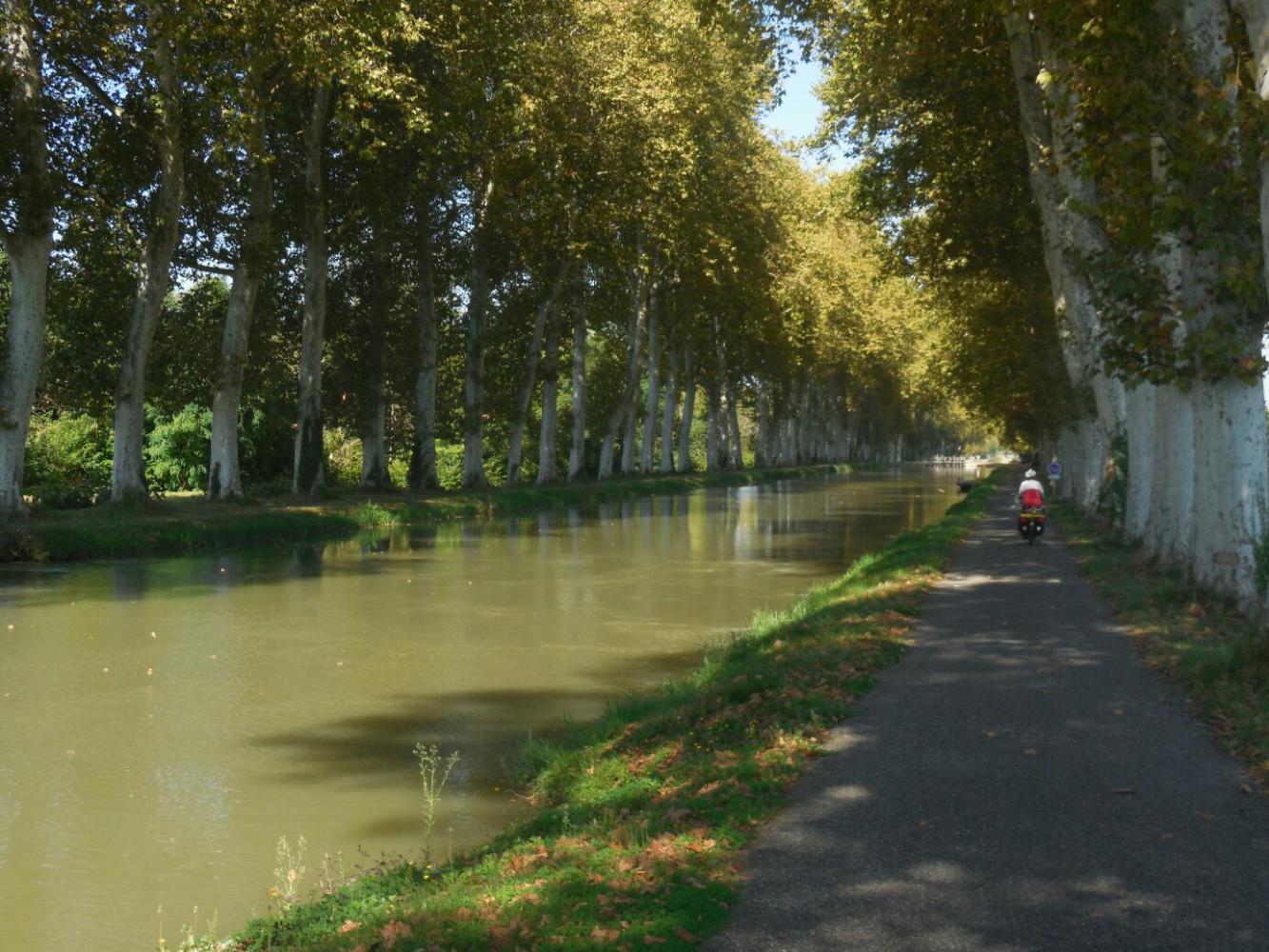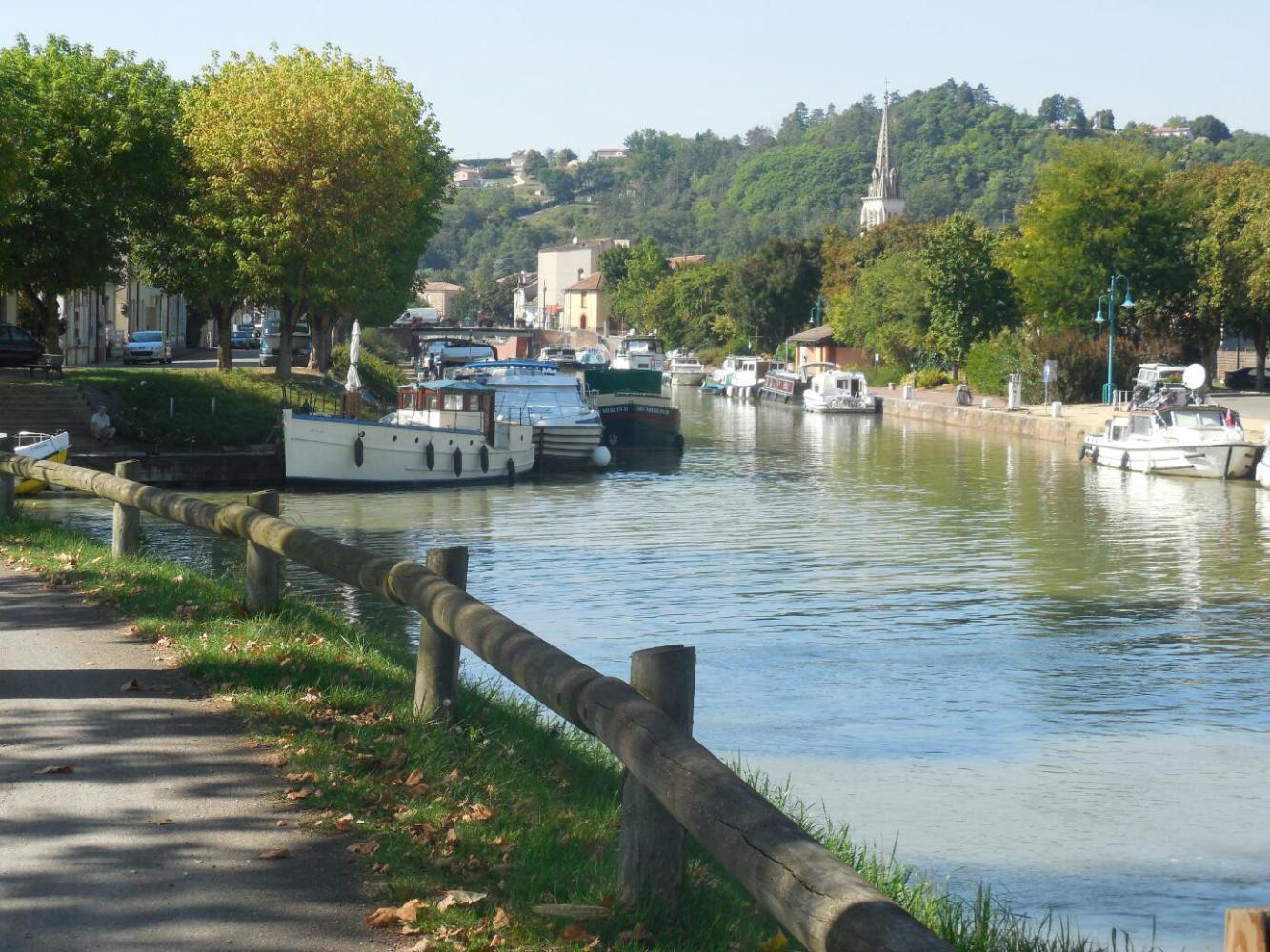 Back on the canal, it's a mixture of appreciating the serene beauty of the water and the border of Plane trees and the boredom of pedalling along with not much change in scenery. To the credit of the canal authority, signs have been erected by each bordering town showing what there is to see there and covering a bit of the town's history. This makes it easy to go off route and check out a town, and we did do this a couple of times.