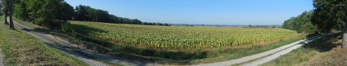 The canal path trees screen most of the countryside, but here is a field of sunflowers, the most common crop here.
