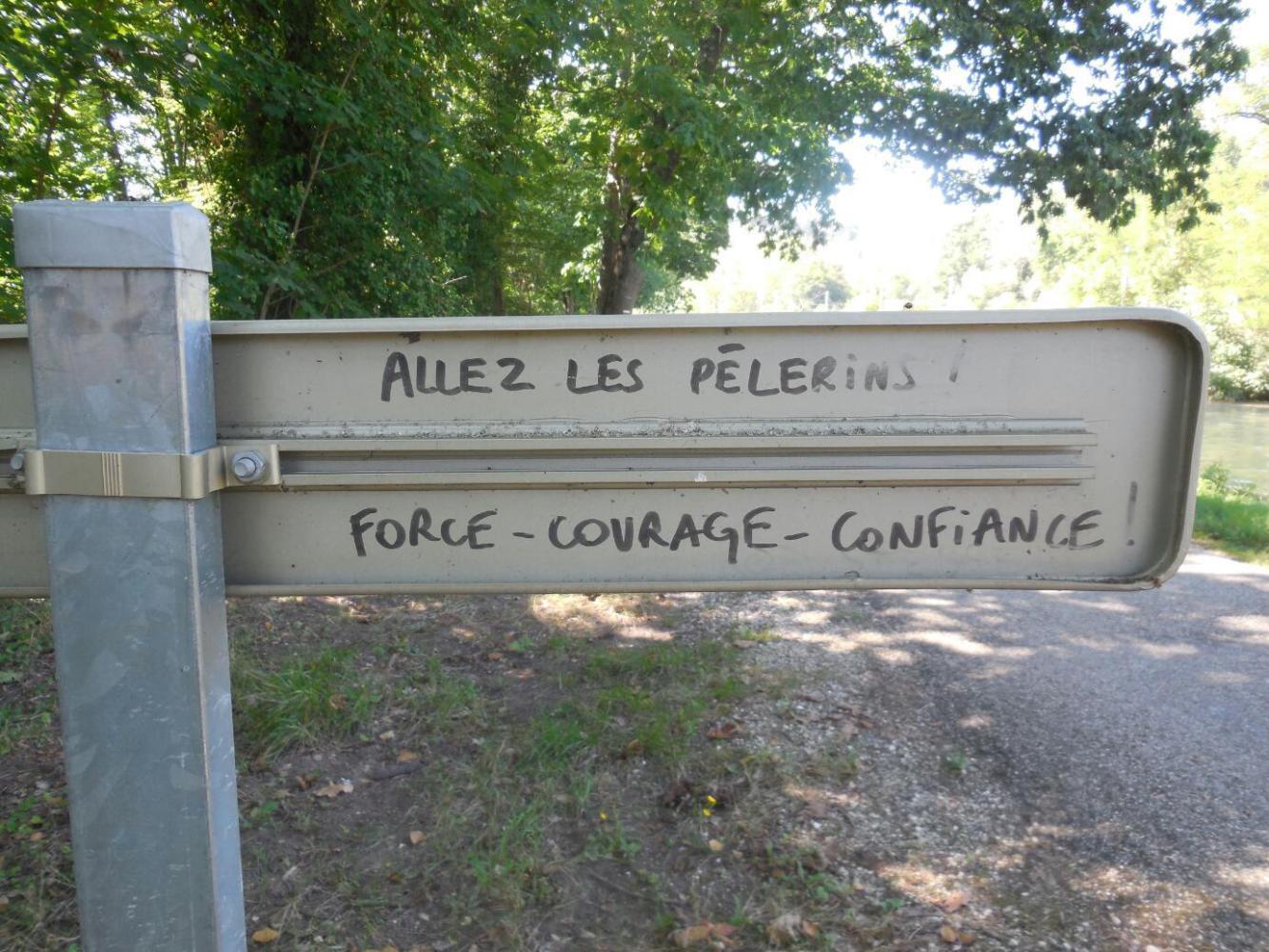 One of the towns we stopped in to was actually Valence-d'Agen, across the canal from where the camping is. We checked out the church, as we somehow always do, and picked up a pamphlet about pilgrimages. It was like a travel brochure, proposing several in addition to St Jacques de Compostelle. There is of course Lourdes and Rome, but also the abbeys of Provence, the western saints of Brittany and Normandy, and even (get this) Israel or Poland, or others. They were signing up people now, but it was not clear what the package includes. Interesting, though.