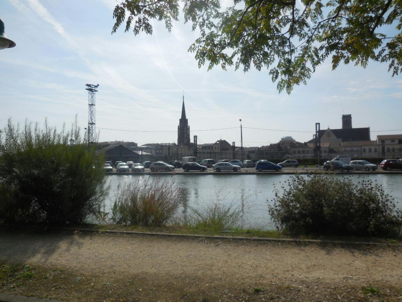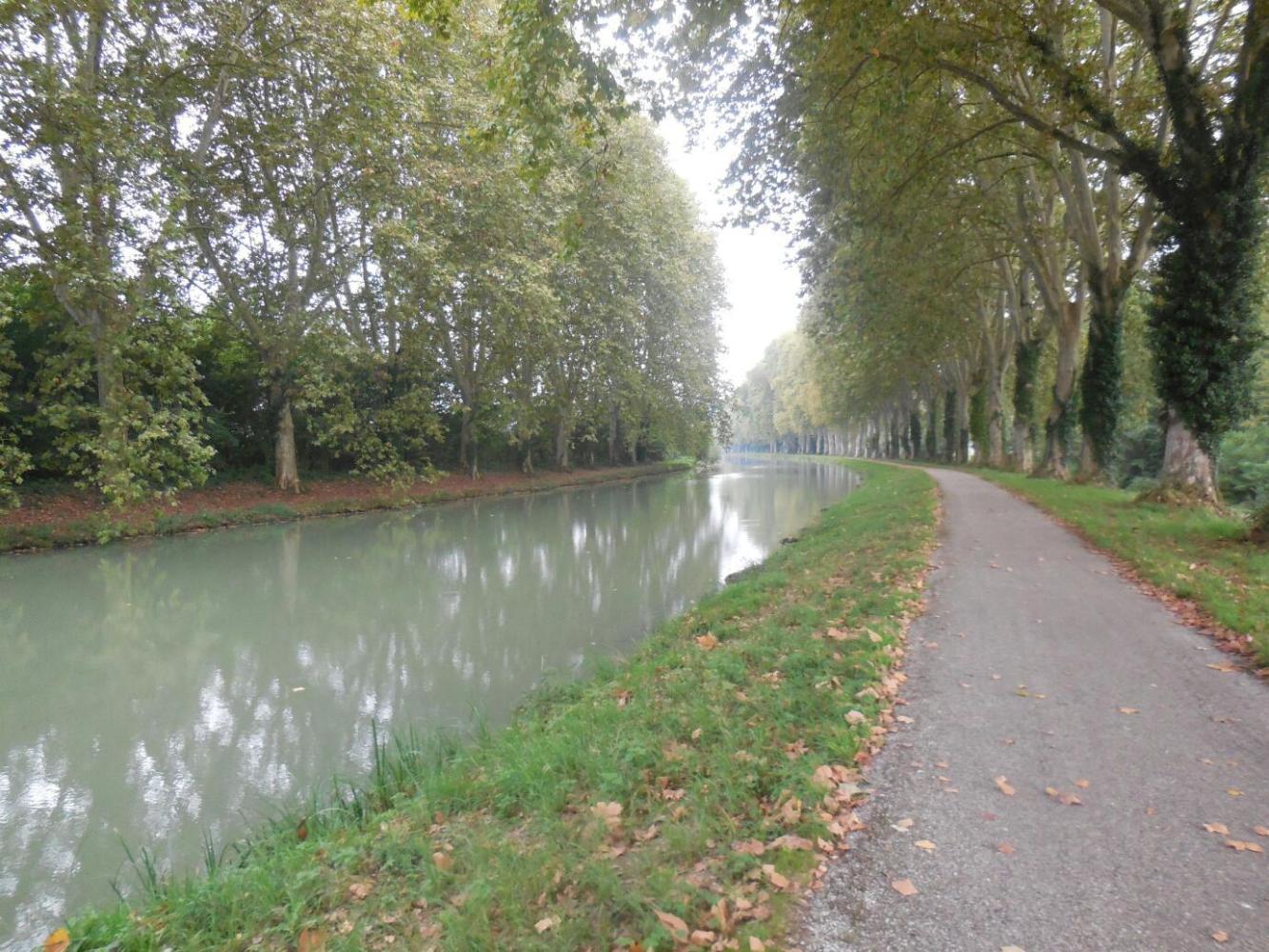 Agen is quite a big town and the canal lead us right in to it. What we saw, though, was pretty much anonymous buildings, distant churches, and traffic on bridges over the canal. No immediate sign of any bakeries, restaurants, grocery stores, or water, - the things that matter to us. Eventually we asked a pedestrian and got directed to a bakery. Back on the canal we just carried on, and soon the scene was back to water and Plane trees. So much for Agen.