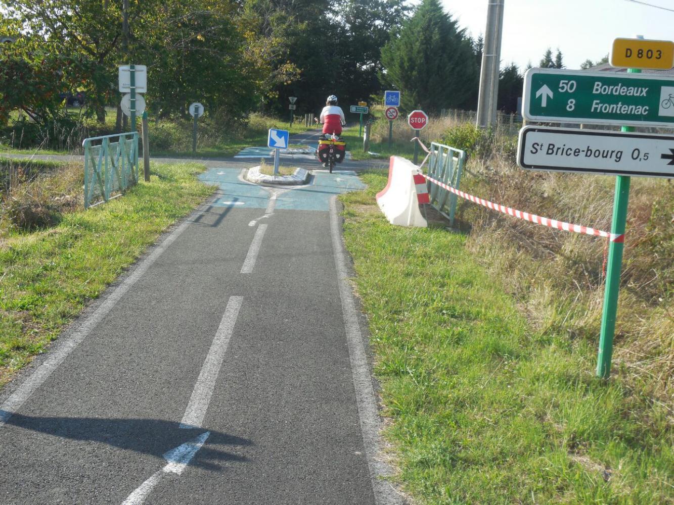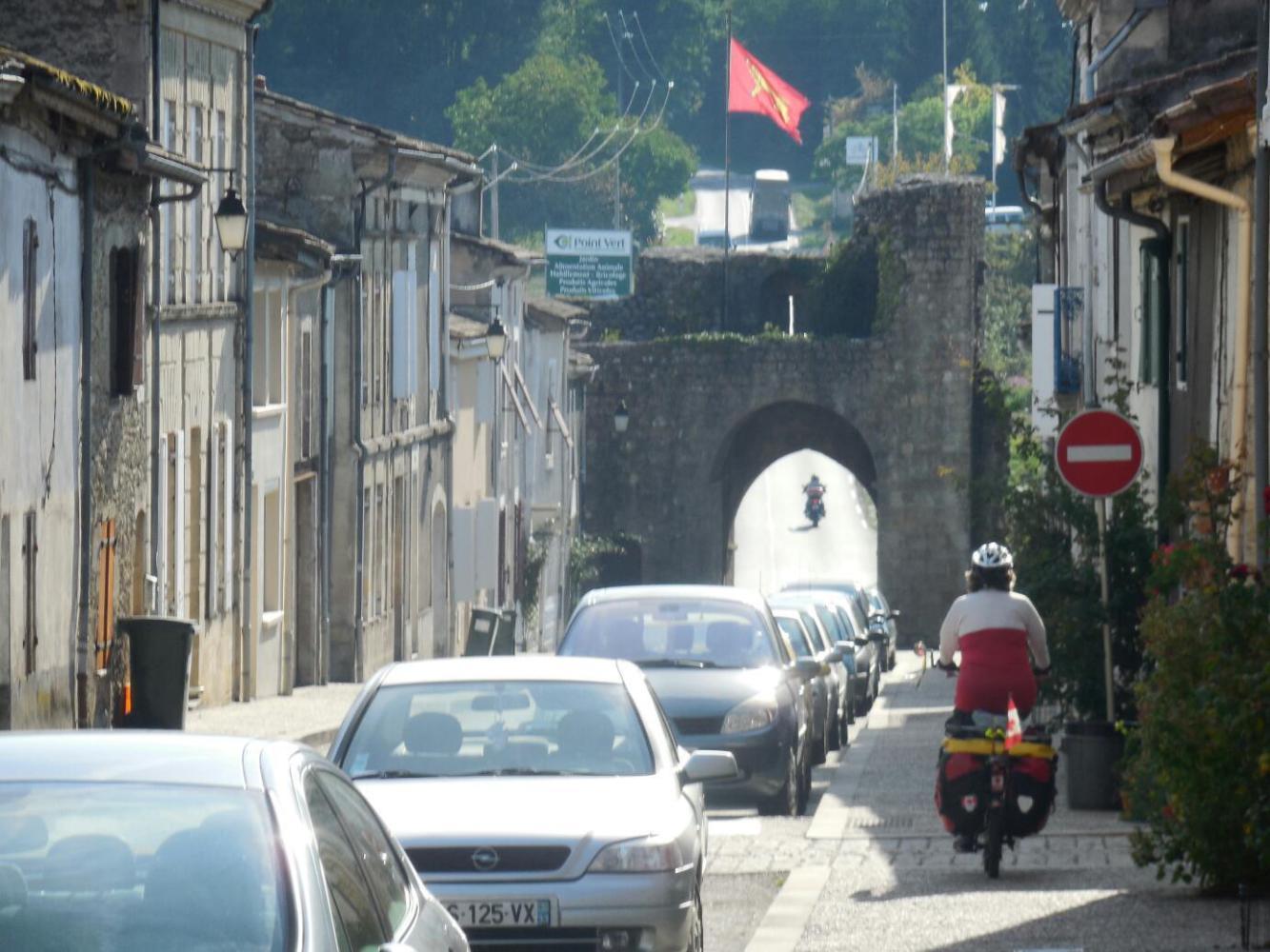 Back on the canal, it looked exactly the same as for the past three days. change was in the offing, though, because the canal ends long before Bordeaux. Actually it ended for us at Fontet, where we unceremoniously took a right and left the canal. Part of the lack of ceremony was the failure of the canal path people to indicate that this was the way to Bordeaux. In fact, we were left to noodle our way up to Sauveterre de Guyenne. At Sauveterre is the start of the Roger Lapebie bike path, which goes to Latresne, which is almost at Bordeaux.
