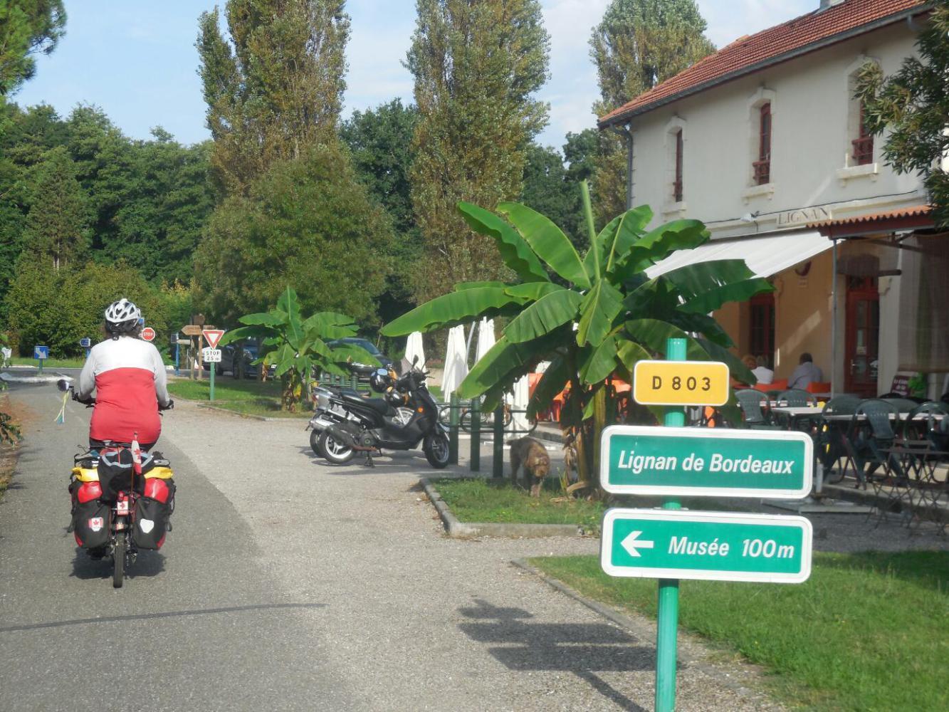 Had we known in advance that the Sauveterrre to Bordeaux trail was going to be almost all downhill, with a good surface, good signage, station buildings along the way (one or two with restaurants and others with camping possibilities), and a connection to a bikeway into the heart of Bordeaux, we would have been really excited to get on it. As it was, the excitement built as we saw more and more, and too soon it was all over.