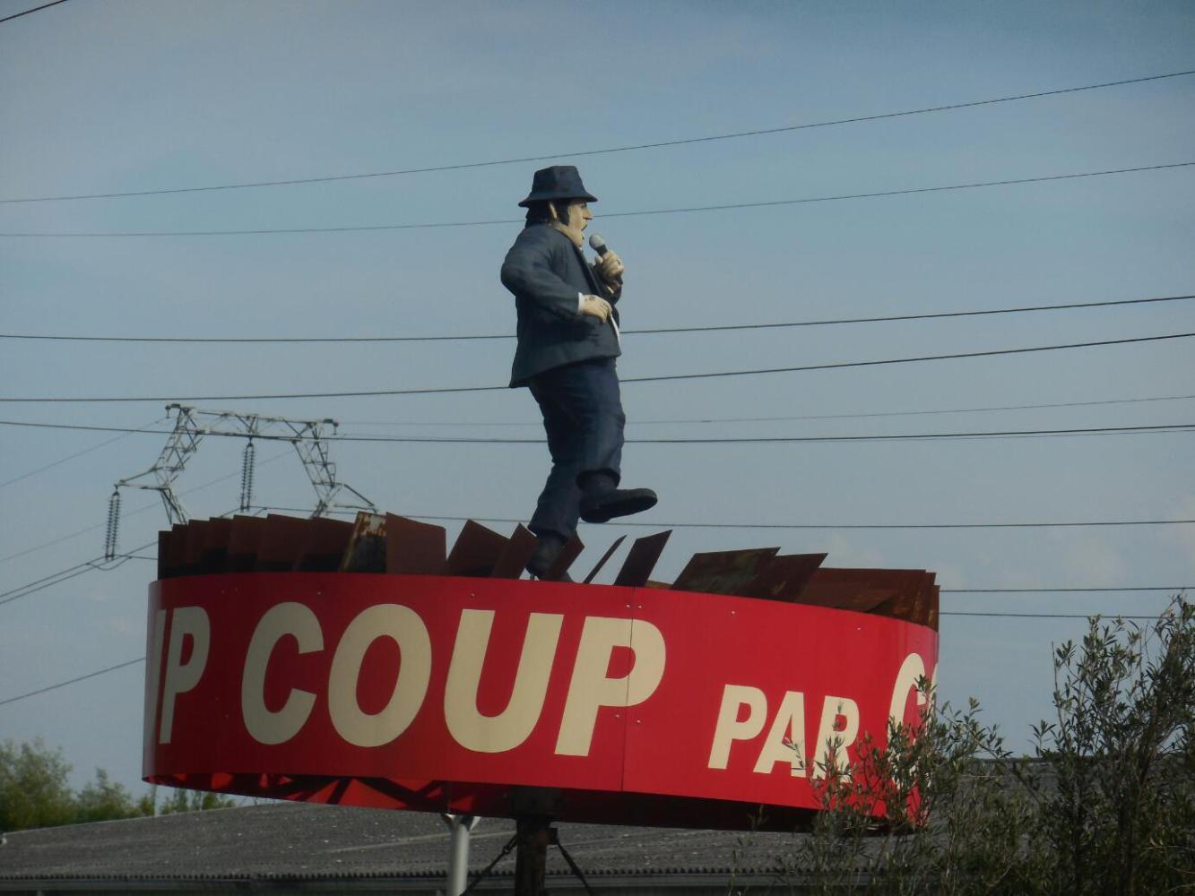 The signage for Lacanau-Ocean, at the coast, kept up perfectly, as did green painted cycle way. we followed this west until, we came to a sign pointing to a Decathlon. So we hung a right and went off looking for it. Dodie went in, and bought camping gaz. Then she tried to argue there was no time for me to go in. Hah. I did promise to be right back, though.